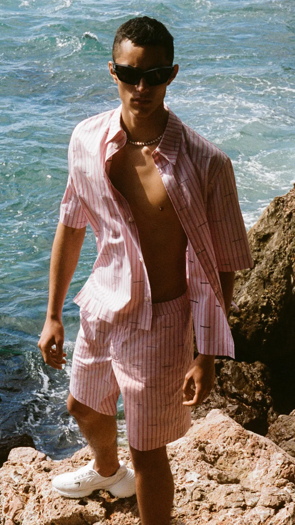 Givenchy’s Matthew M. Williams produced two knock-out men’s and women’s collections earlier this year, which many considered to be his best so far. Now, the house’s creative director presents us with his first Resort capsule collection, titled the Givenchy Plage. Taking inspiration from the South of France, Williams translated the coast’s sun, sea and relaxation into laid-back pieces, including crisp white pyjama-style separates, ocean blue T‑shirts and shorts made from regenerative cotton poplin for extra breeze. Time to book a holiday, we reckon.