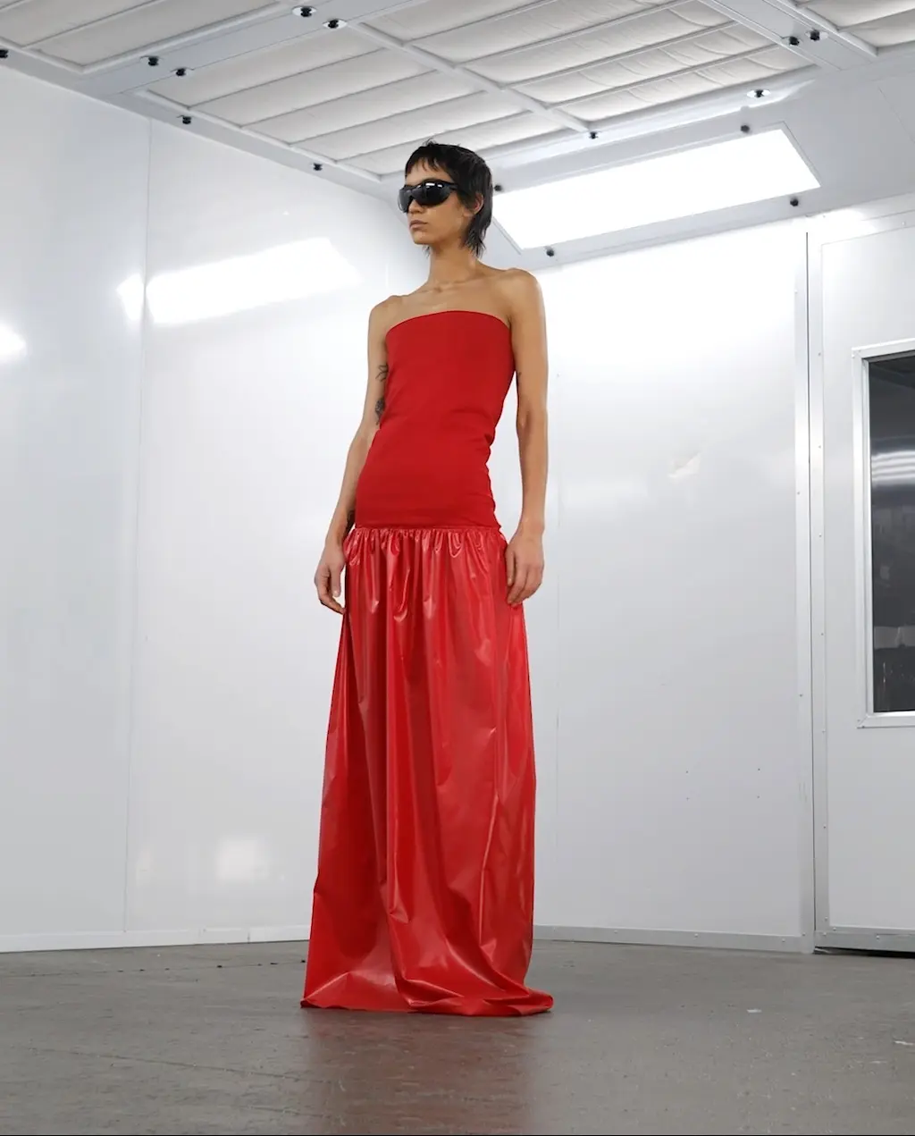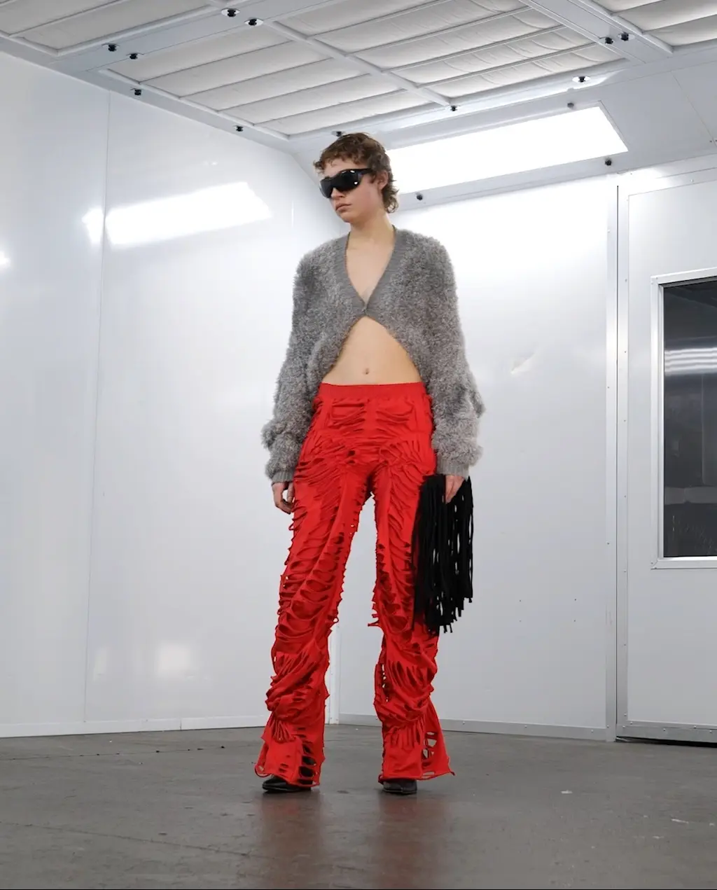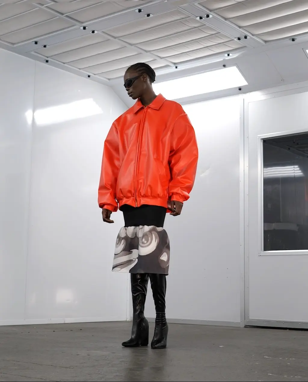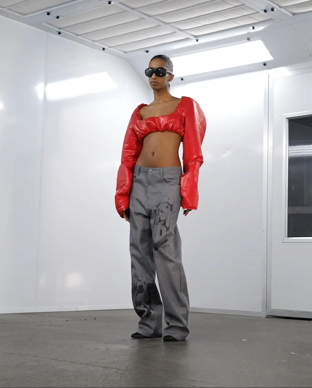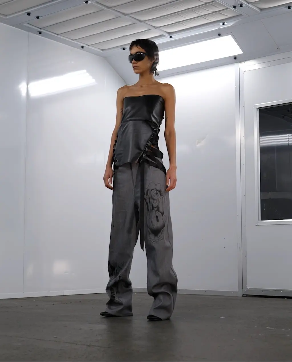 Off the rails: XXL leather jackets, miniscule crop tops and lots of vinyl. The Danish, Berlin-based designer is producing fits for the hellraising club kids (and Julia Fox).