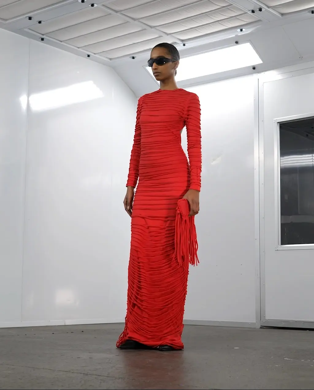 If ever there was a designer who best suited Julia Fox’s path to becoming one of our generation’s most divisive dressers (we love it, FYI), it would be the sculptural-by-design, club-kid-by-nature designs of Sia Arnika. Fox, who has redefined appropriate grocery shopping attire, low-rise trousers and bikini tops, wore Arnika’s ruched, blood red crop top from her most recent collection back in May, revealing her torso in its entirety and looking like the underworld’s latest recruit.