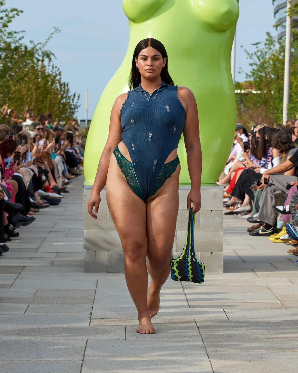 While Sinéad’s AW24 was a curious study of the office worker, SS25 is “trippy”, featuring “water and brightness”. And, of course, more firsts.