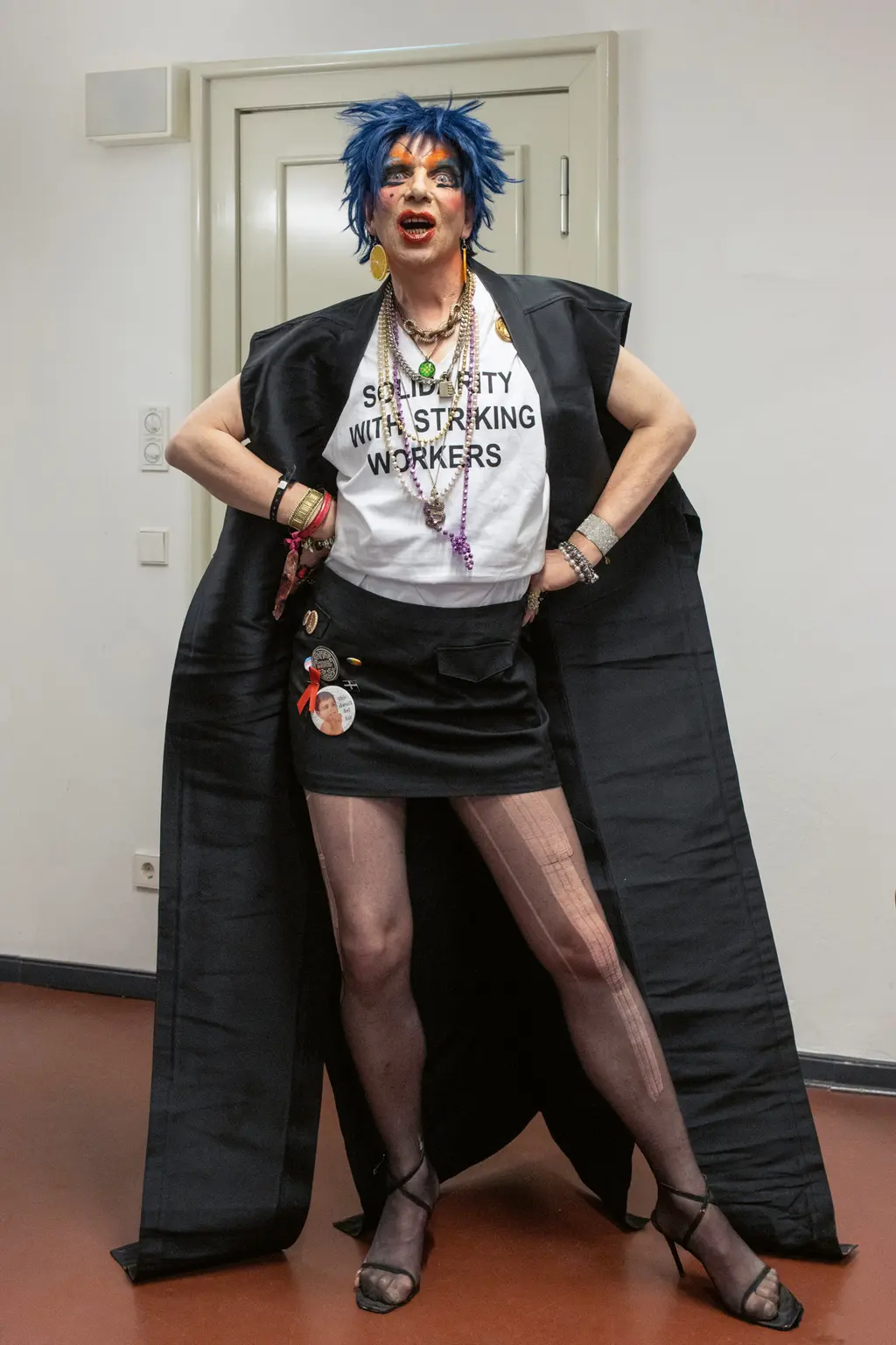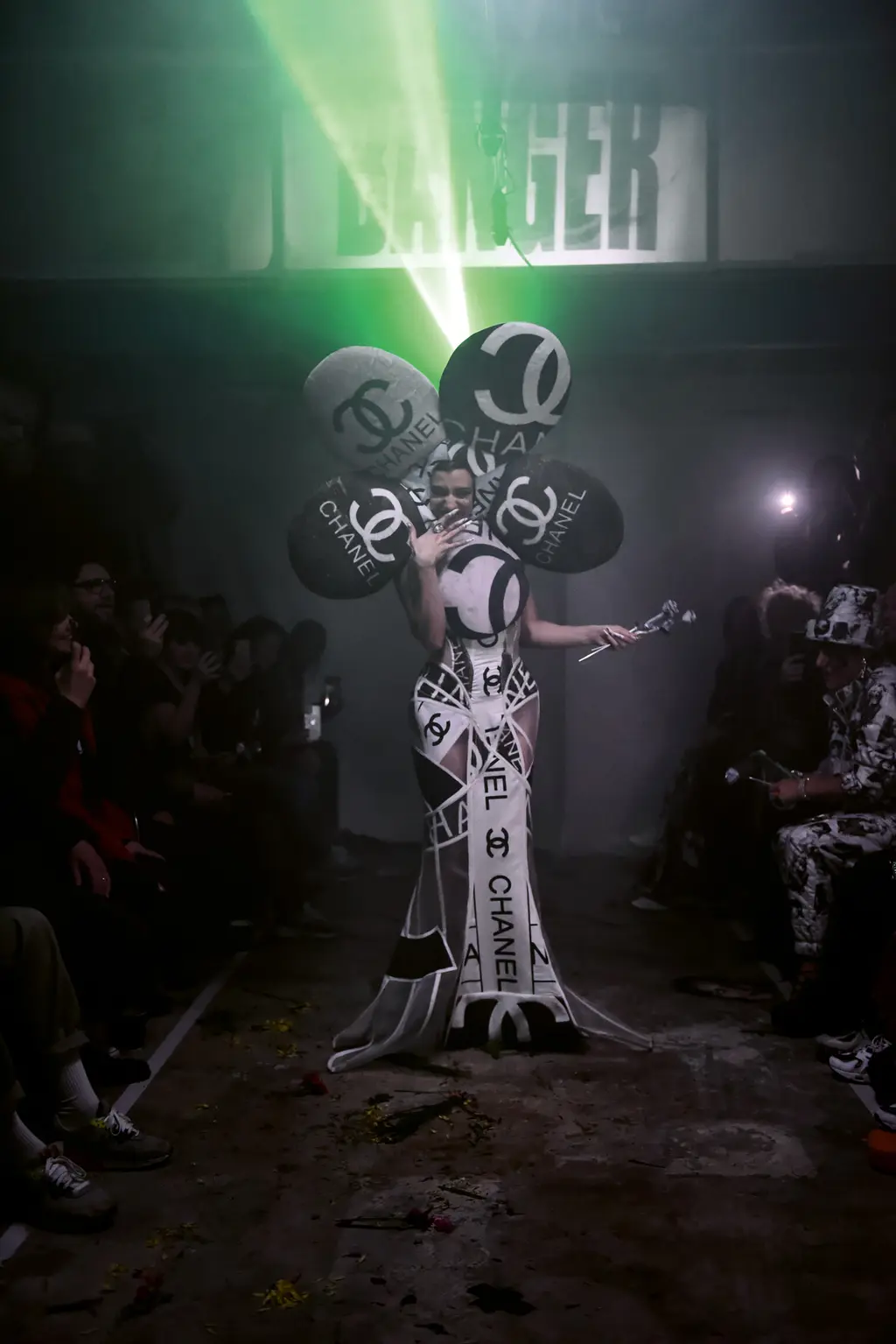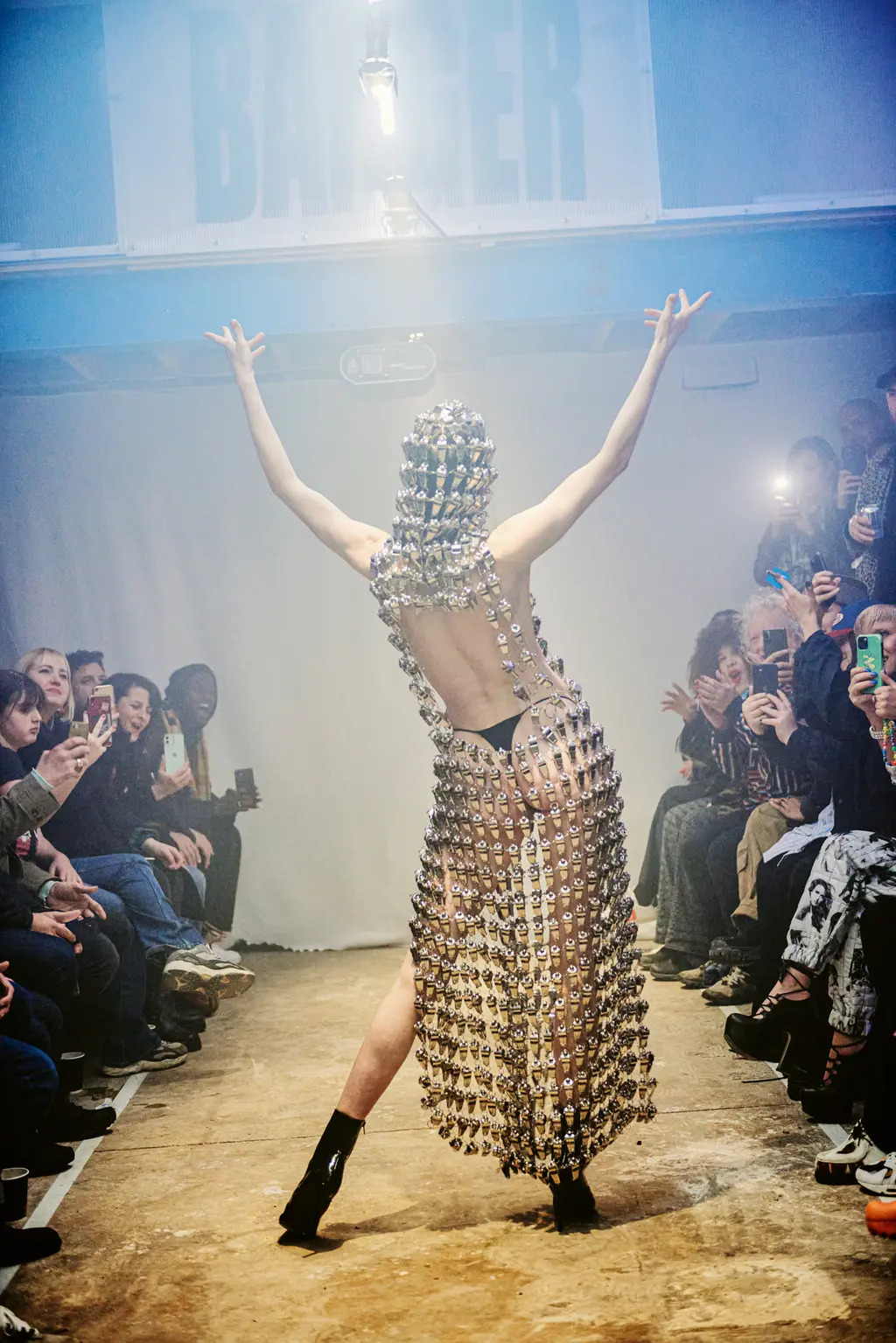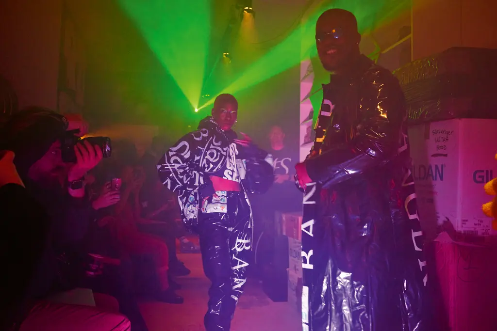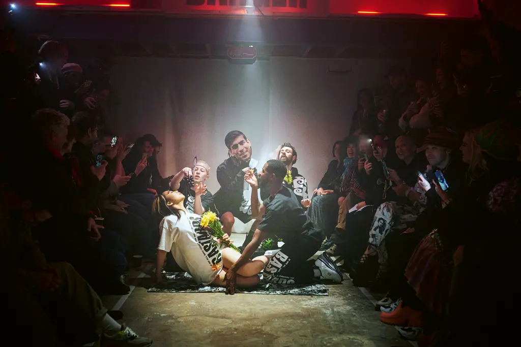 In the decade since the brand started, Sports Banger has done two proper fashion shows. The second one, in September 2022, was called The People Deserve Beauty and used its pre-existing T‑shirts as a theme, with FREE TULISA, FUCK BORIS and the NHS all featuring alongside vogueing, and modelling by midwives and rappers. Vogue described it as “hilarious” and “excellent”. “We’d done raves,” says Banger. “Then when we did a fashion show, I was like, ‘Oh my God, this is a next level buzz. This is insane.’” The only reason he hasn’t done more is budget: “We just haven’t got any fucking money,” he says. “Especially this last year, it’s hard keeping the lights on.”