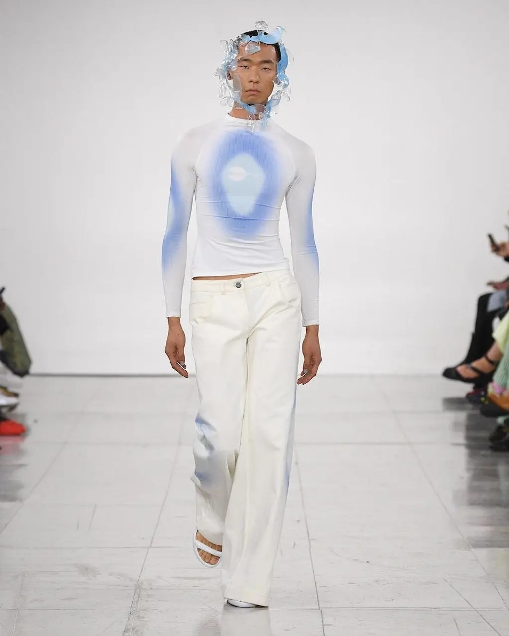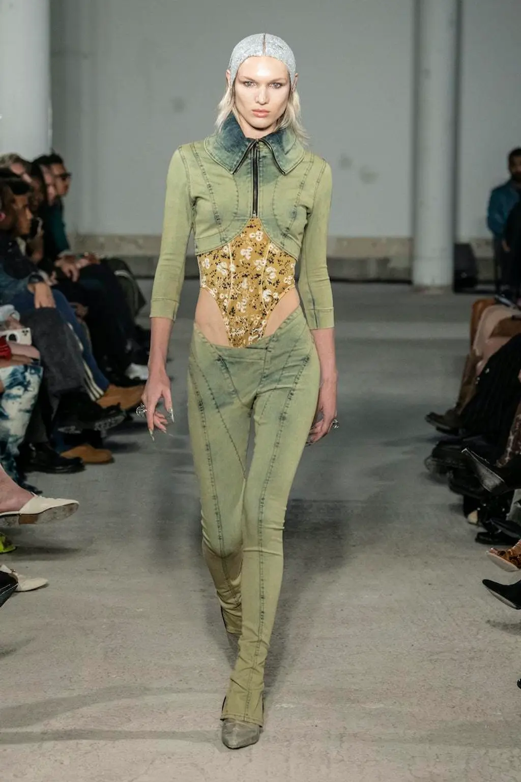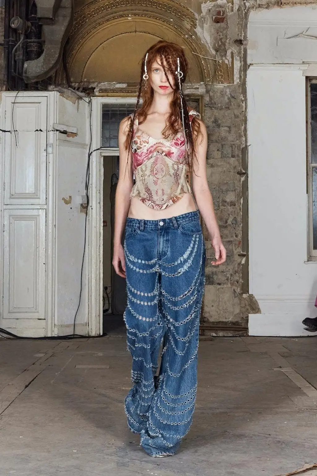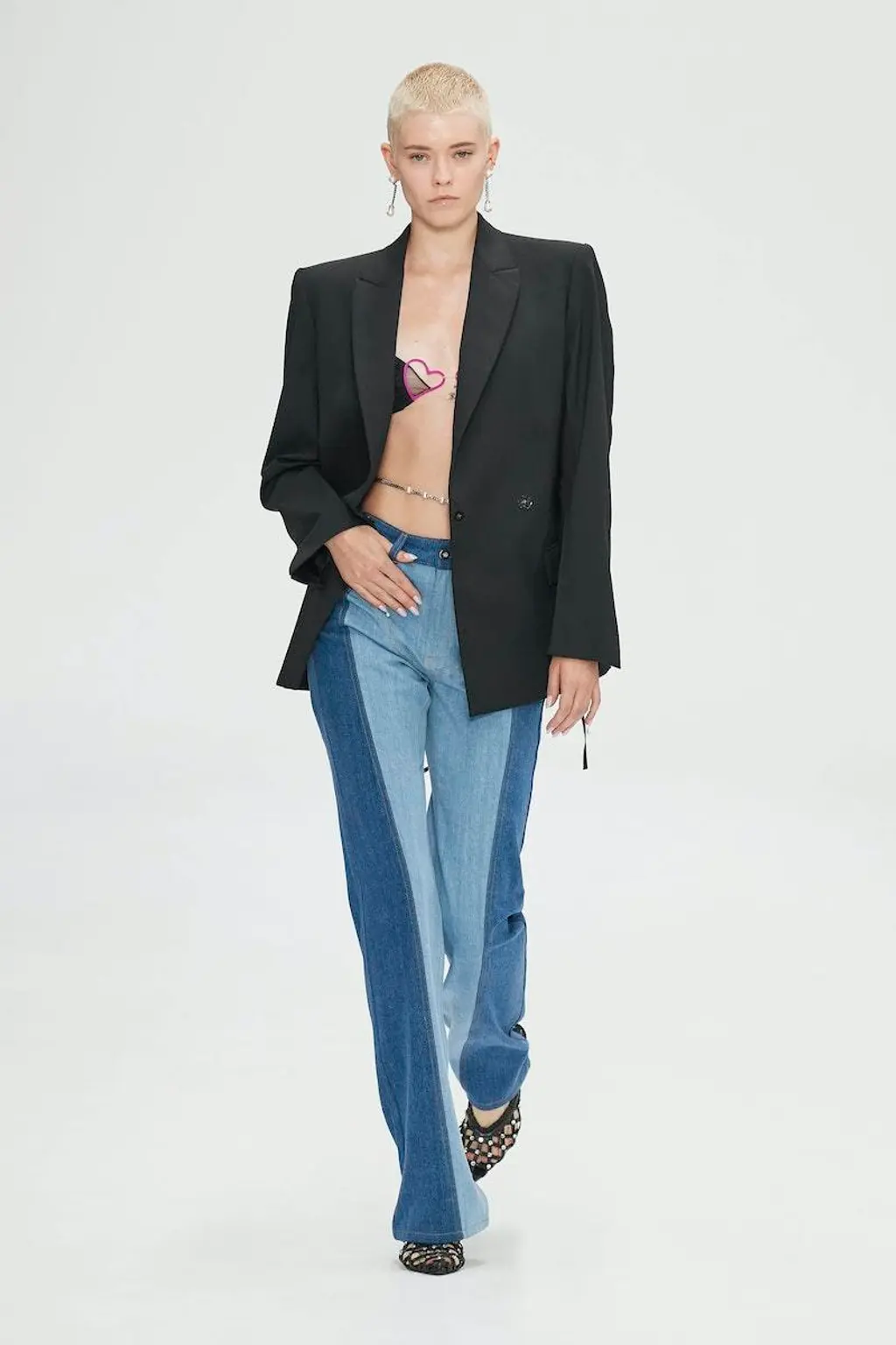 In a first, Dilara Findikoglu bubbled up some denim from her cauldron of underworld fashion – and the result was sexy. Loose-legged with hole detailing, she was just one of the designers who brought new meaning to our blue best friend for SS23. KNWLS turned acid-wash denim into a jacket cut like a corset, and also knocked out a belted trench coat for added satisfaction. Newgen designer Masha Popova’s runway debut went all trippy, with psychedelic prints on floor-length denim skirts and deconstructed bralets, while Blumarine followed similar themes to Findikoglu, looking to the depths of the sea for dark denim inspo alongside religious iconography. And finally, Chet Lo went for something a little more meditative, choosing calming white for low-slung trews. See, one size never fits all.