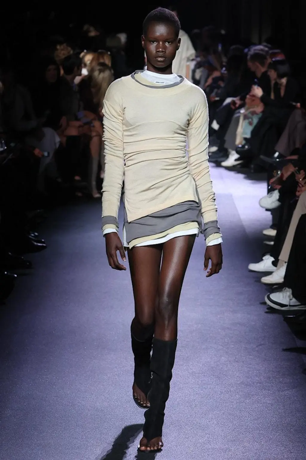 At some shows, the magic was in the styling. MM6 set the tone with its irreverent layering of vests over vests, to the point of it looking like models had been caught in a fitting room. Over at Miu Miu, stylist Lotta Volkova layered up soft, creamy cashmeres and cottons in muted tones in a way that felt subtly romantic. DSquared2, on the other hand, was a mad-hatter affair, with Bermuda shorts styled over embellished trousers, three shirts piled on top of one another, and tiny bikini bandeaus worn over lycra scuba tops. Less is more? Forget it.