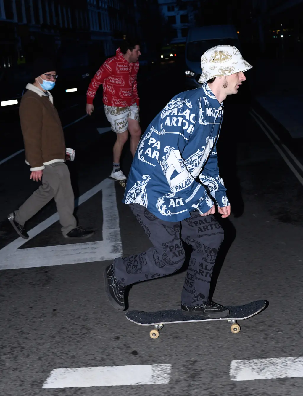Danny wears jacket, T‑shirt, trousers and hat PALACE ARTOIS
