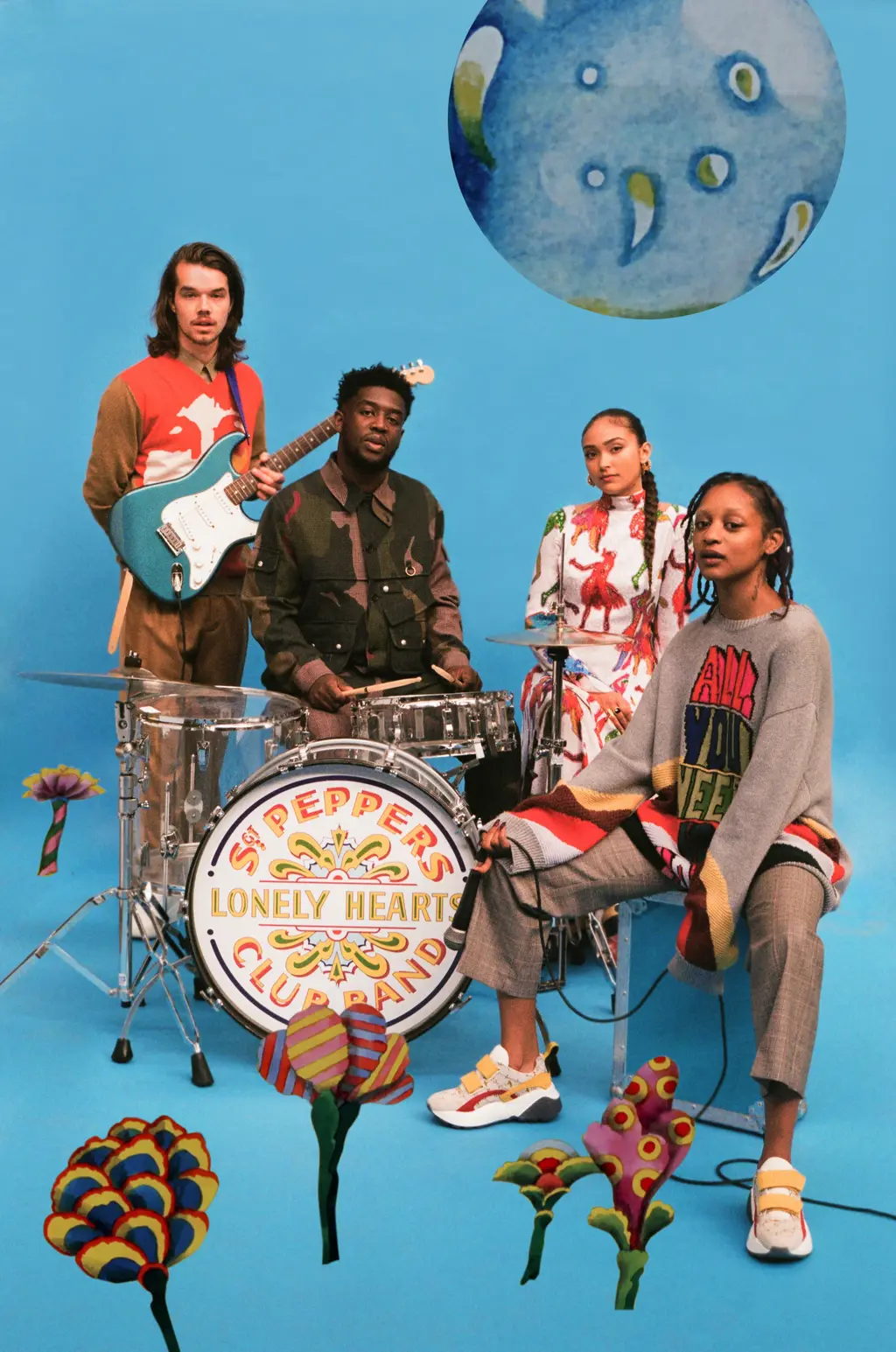 Fast-forward to today, then, and the collection feels as familiar as it would have done some 50 years ago. Replacing Paul, Ringo, John and George are music’s budding newcomers: Joy Crookes, Oscar Jerome, Keyah Blu and Femi Koleoso who provide electric vocals and find their way through the rabbit hole in the accompanying ‘All Together Now’ videos. Prior to this, girl-of-the-moment Billie Eilish unveiled a look from the collection on stage at Glastonbury – quite in keeping with the psycha-theme if we do say so ourselves.