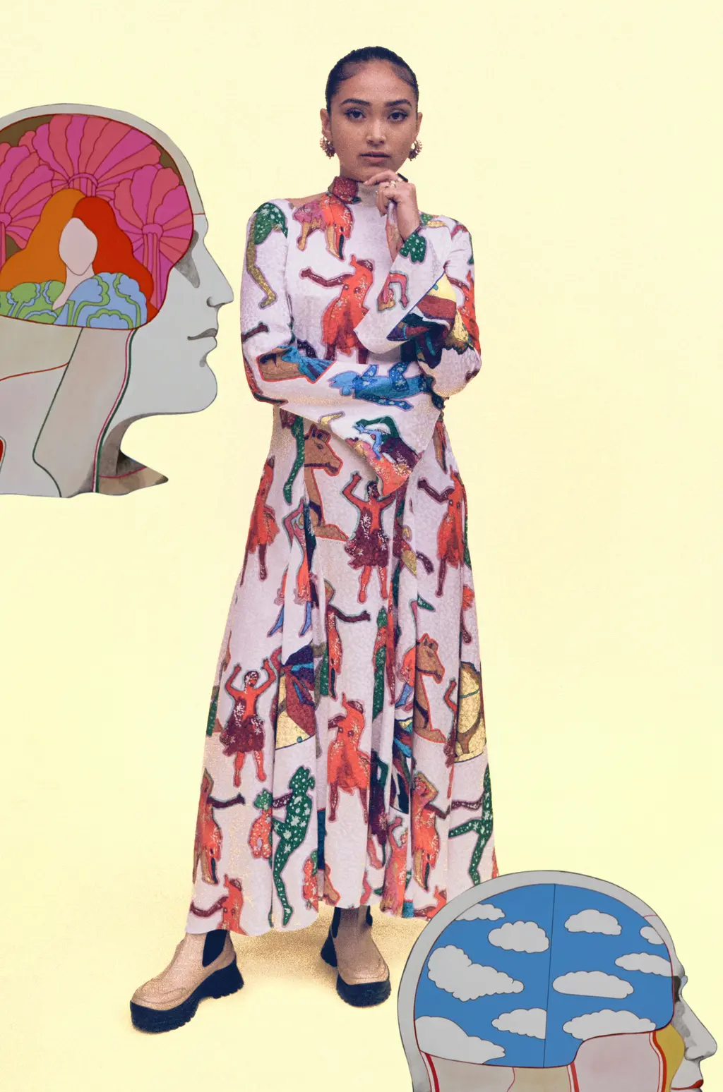 Watching the film I was like this is so incredible and so relevant today as it was 50 years ago – it’s so modern! To think what those four young guys did, all the musical content and the lyrics is so impressive. Creatively, visually, the animation by hand and the beauty and delicacy of moments in the film inspired me. There’s this psychedelic vibe to it all; the colours, the patterns and prints, such a strong visual identity with a distinct sense of humour, that identified the Beatles with Sergeant Pepper. The beauty of the lyrics too just blew me away. I came out of it thinking ‘oh my god, I have to do a collection’.