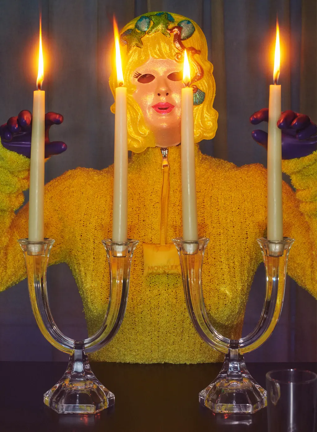 NARCISSISTER wears jumper MONCLER and gloves ELISSA POPPY