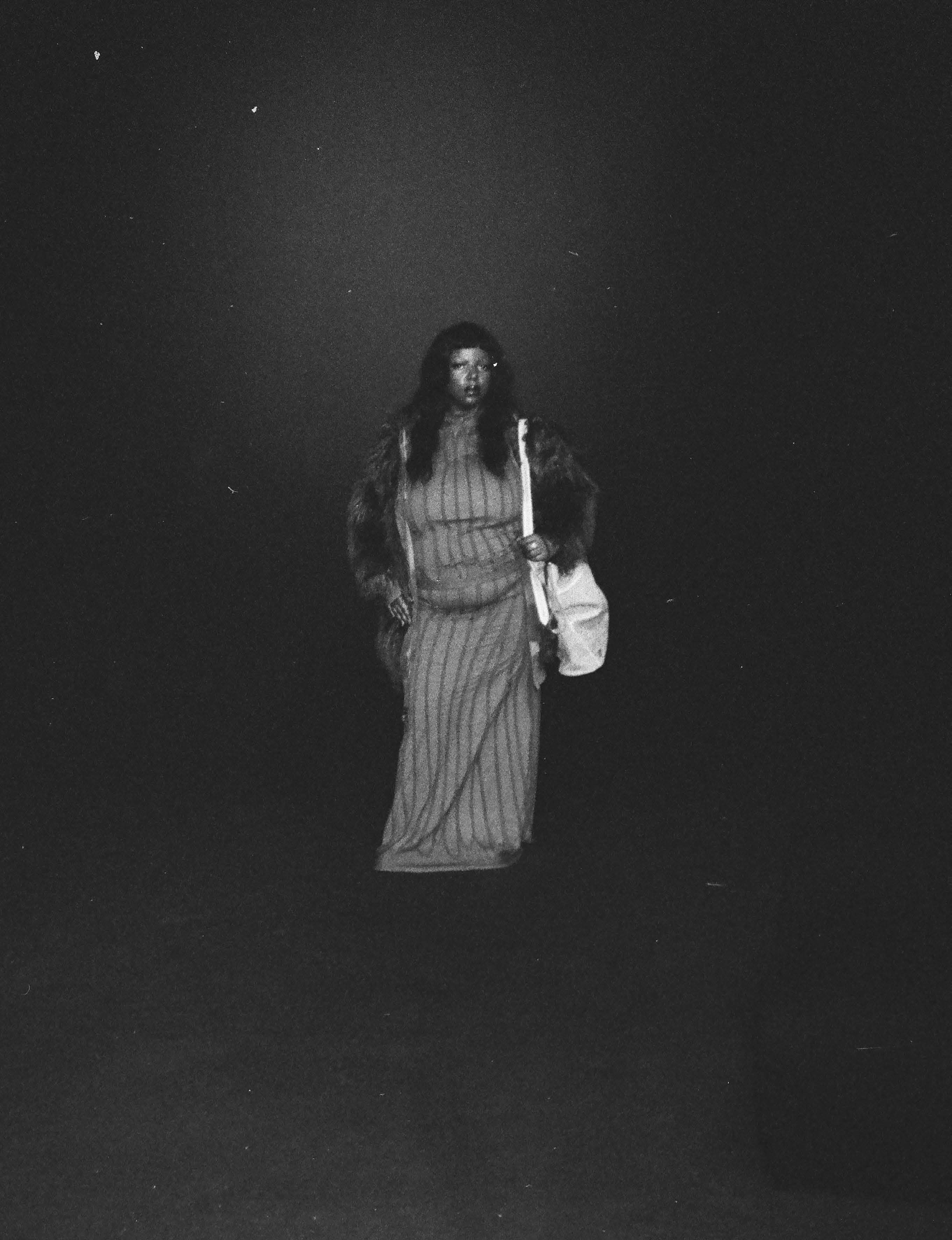 Erykah wears jacket, snood and earrings TELFAR and hat and rings talent’s own