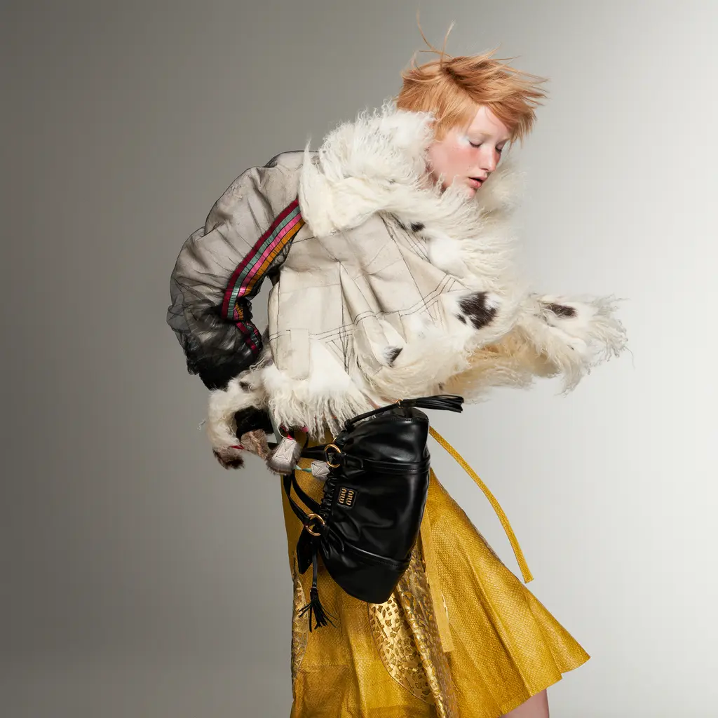 coat and skirt JOHN GALLIANO FW 2002 READY-TO-WEAR and gloves and bag MIU MIU