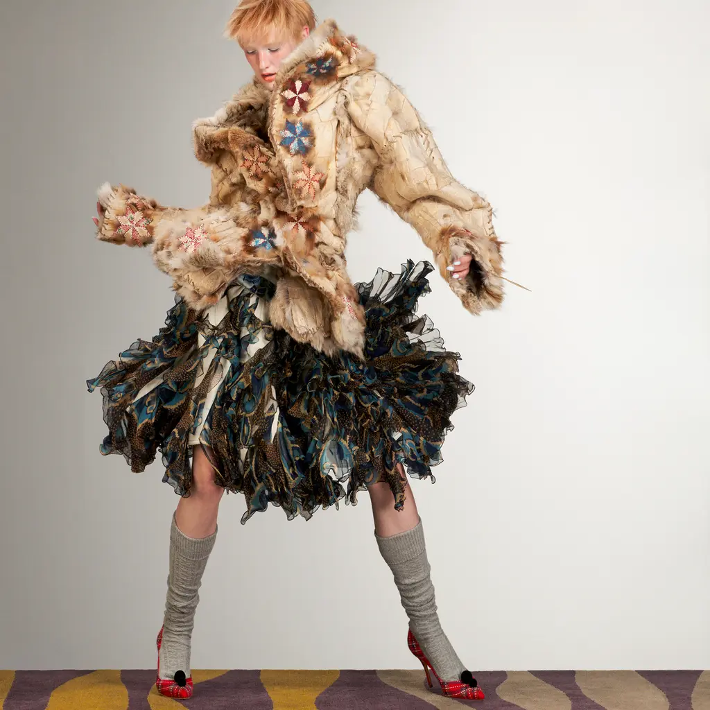 coat and skirt JOHN GALLIANO FW 2002 READY-TO-WEAR, socks stylist’s own and shoes MANOLO BLAHNIK