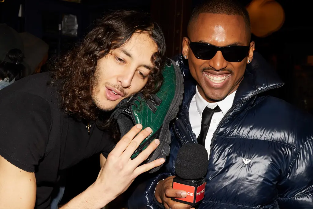 It was thrown in celebration of the new New Balance X 99GINGER 1906R shoe, part of the Boston footwear brand’s series of “friends and family” collaborations. Featuring a sleek croc green leather outer and the 1906R’s usual see-you-later-alligator speed, it’s a dream sneaker to snap up.