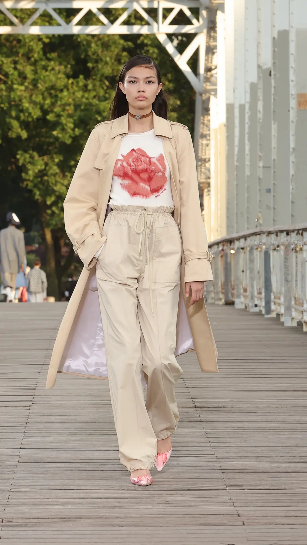 Instead, one is better off observing his sartorial footnotes as part of a wider vision that revels in mystery. The mime-like make-up, for instance, could be a nod to the show’s surroundings or, equally, the low-budget slap seen in Pier Paolo Pasolini’s cult classic La Ricotta (1962), which Kiko showed alongside the clothes. Certainly, the pale pinks and golden yellows that pepped the collection’s palette recalled the film’s costumes, but again, it’s Kiko. Our guess is as good as yours.