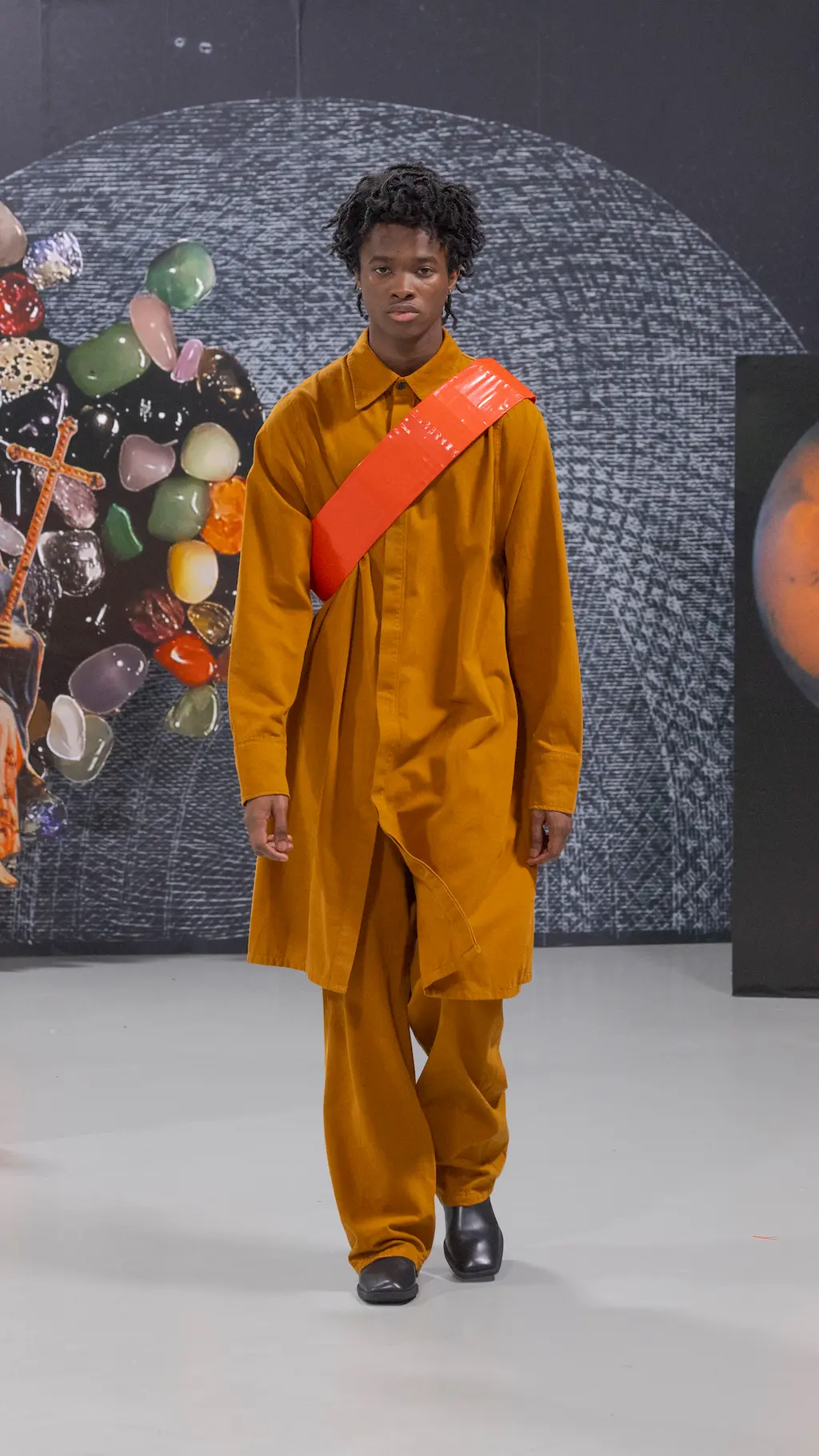 All the while, the soothing timbre of Ethiopian musician HaddinQo’s masinqo – a traditional instrument from Ethiopian and Eritrean music – carried the models with grace, complementing what can only be described as a fashion-forward exercise in decolonial thought.