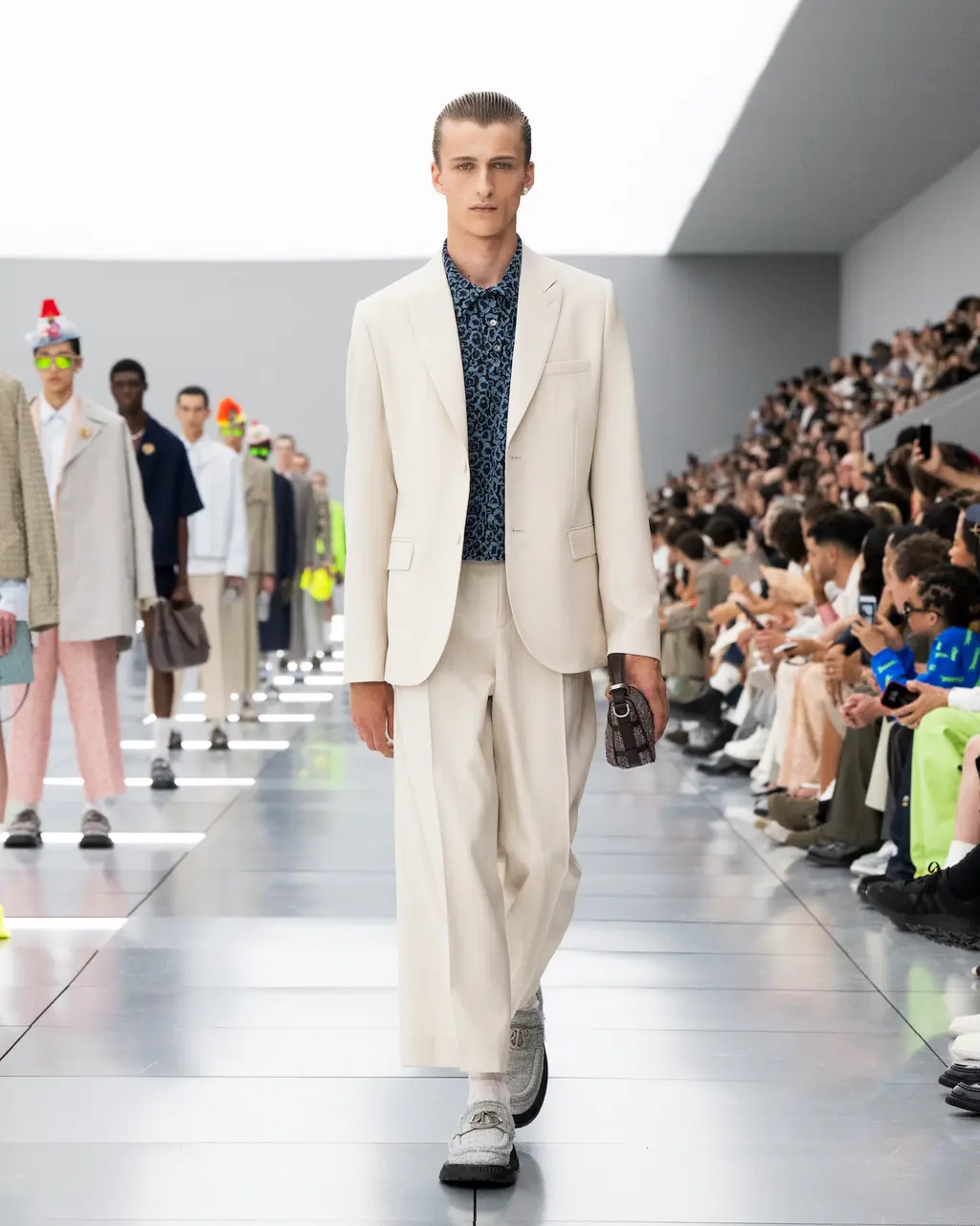 A better question: who wasn’t there? From K‑pop star Cha Eun-woo and Colombian singer-songwriter Maluma to Winnie Harlow via HRH Princess Julia, the audience was a who’s who from every chapter in Kim Jones’ illustrious life. In fact, one of the FROW bleachers was lined almost exclusively with fashion’s finest figures, namechecking Pharrell, Matthew M. Williams, Wales Bonner, Stefano Pilati, Jeremy Scott and Eli Russell Linnetz.
