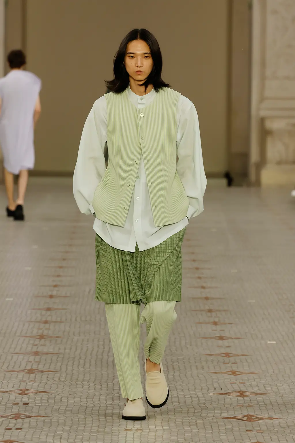 It’s fast approaching a year since Planet Mode lost one its greatest heroes, Issey Miyake. With that said, the namesake labels that survive him have done a stellar job in carrying his mission to make clothes rooted in function – not trends – forward. This SS24 collection for the Homme Plissé Issey Miyake line was no exception to the rule.