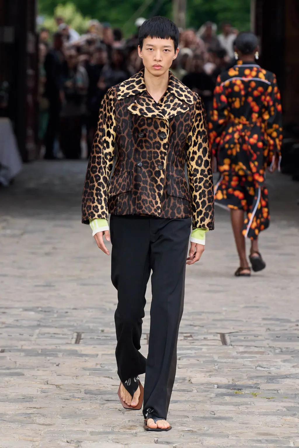 Throughout, trousers came finished with looping appliqué, while lapels were future-proofed with undulating curves and popper-action fastenings. So far, so Kiko. Pocket welts cut diagonally across the pec line, and cotton was darted or pleated into disarray. Sure, the cropped blazer cardigans, pintucked across the torso, hardly scream summer, but that’s irrelevant. Kiko is for the achingly cool who flex but never explain.