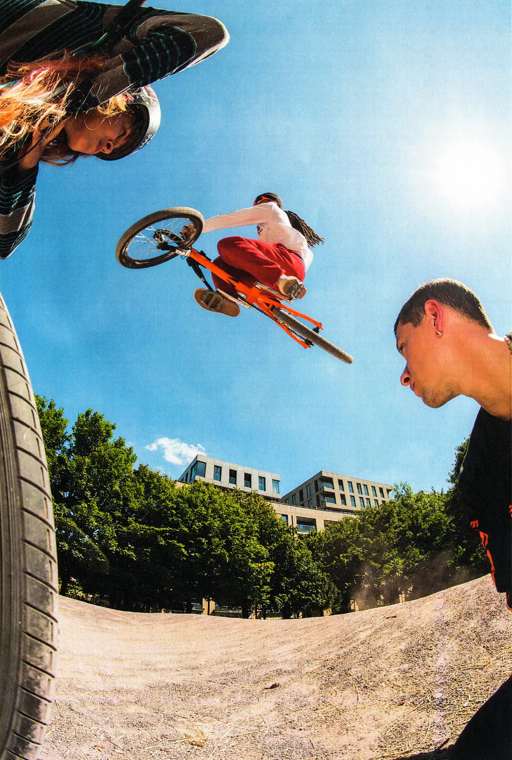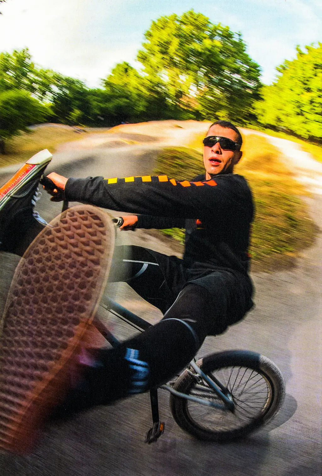 Never one to watch from the sidelines, THE FACE took the new capsule out for a spin at Haggerston BMX track with UK riders Louie Mire, Meeshaq Malone and Mish Sikorsa. OK, so we did kind of watch from the sidelines since the only barspin we do is feeling dizzy after too many pints, but we also recorded the action. Alongside a trick-filled lookbook, we made a VHS-style film backed with some sort of lost game show soundtrack, slow-mo jumps and a race to the finish line. Get on your bike, you!