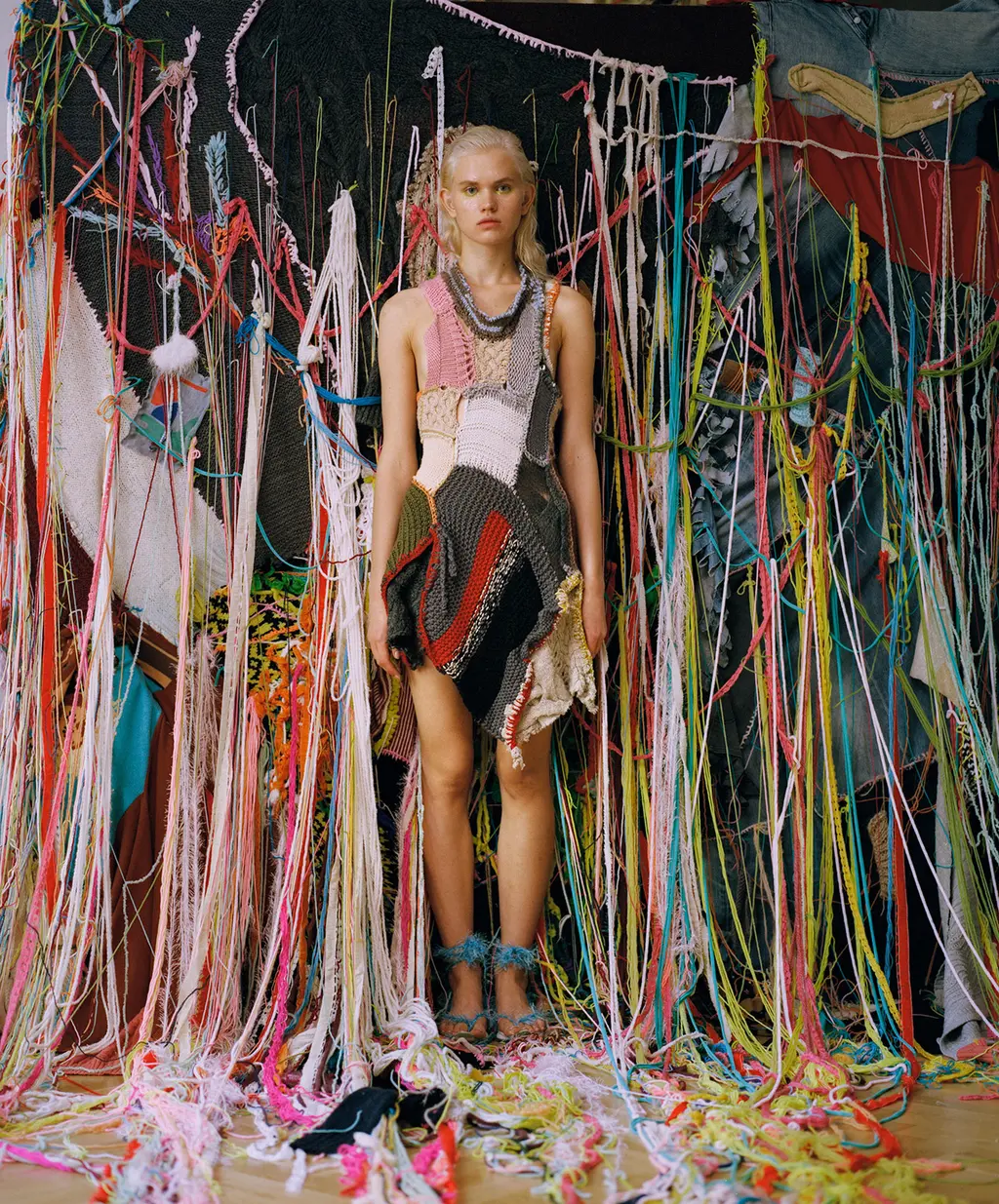 Vereja creates eye-catching, off-the-wall knitwear. Drawing influence from Russian folklore and Japanese anime, the Moscow-based brand’s most recognisable pieces include asymmetrical, fluorescent dresses and itsy-bitsy crocheted bralettes.