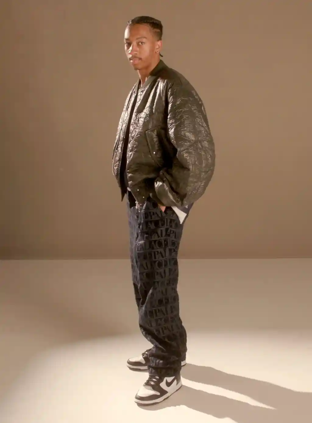 “The late ’90s, early 2000s was my reference point for menswear. I lean in on references I grew up around and I think it’s the emotional connection and my memories that drew me towards Nike. I’ve seen them go in and out and now they’re making a comeback. There are a lot of clues in the past which can help you create the future.”