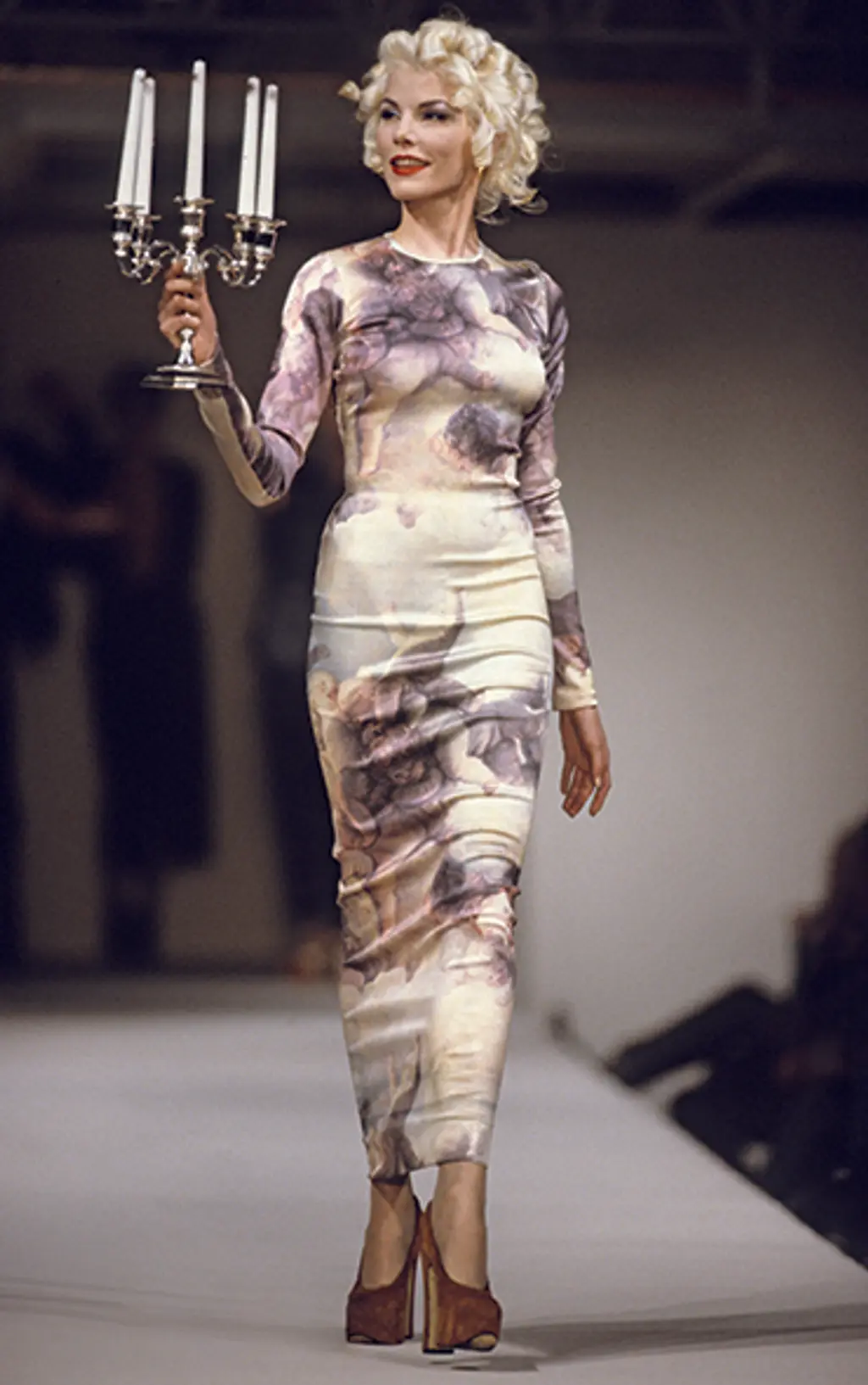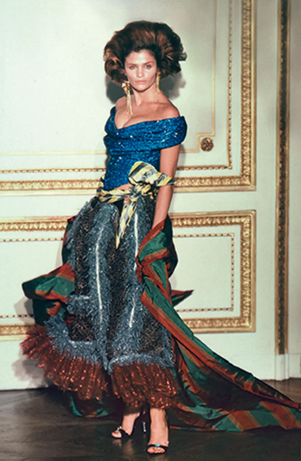 Westwood studies the history of fashion back to its sources and its history fascinates her. However, if she has ever paid attention to modern fashion – a genuine question, given how singular her work has always appeared – it is only to buck against it and challenge received notions of modernity and beauty. When fashion surged towards minimalism, Westwood designed collections of rich baroque excess; when fashion wanted women to look powerful and masculine and rich in the mid-1980s, Westwood championed the disenfranchised, proposing clothes with soft curves and rounded shoulders, and declared: “In Italy they take expensive cloth and make it look boring, but I take basic fabric and make it look timeless. They just don’t understand what I’m trying to do.”