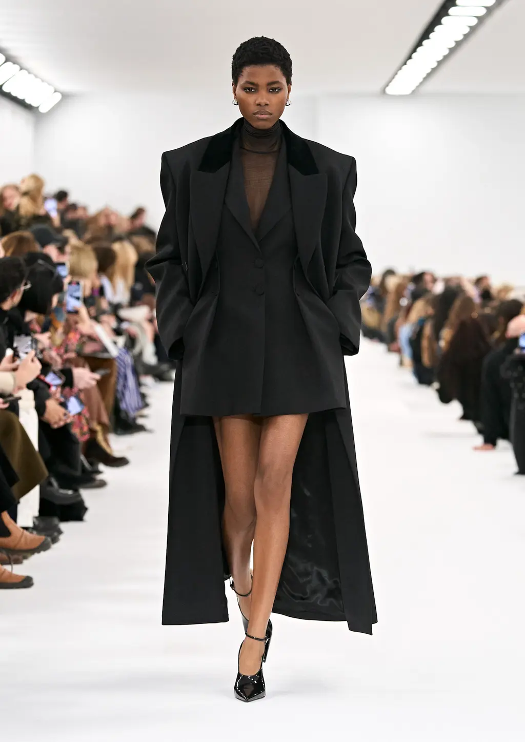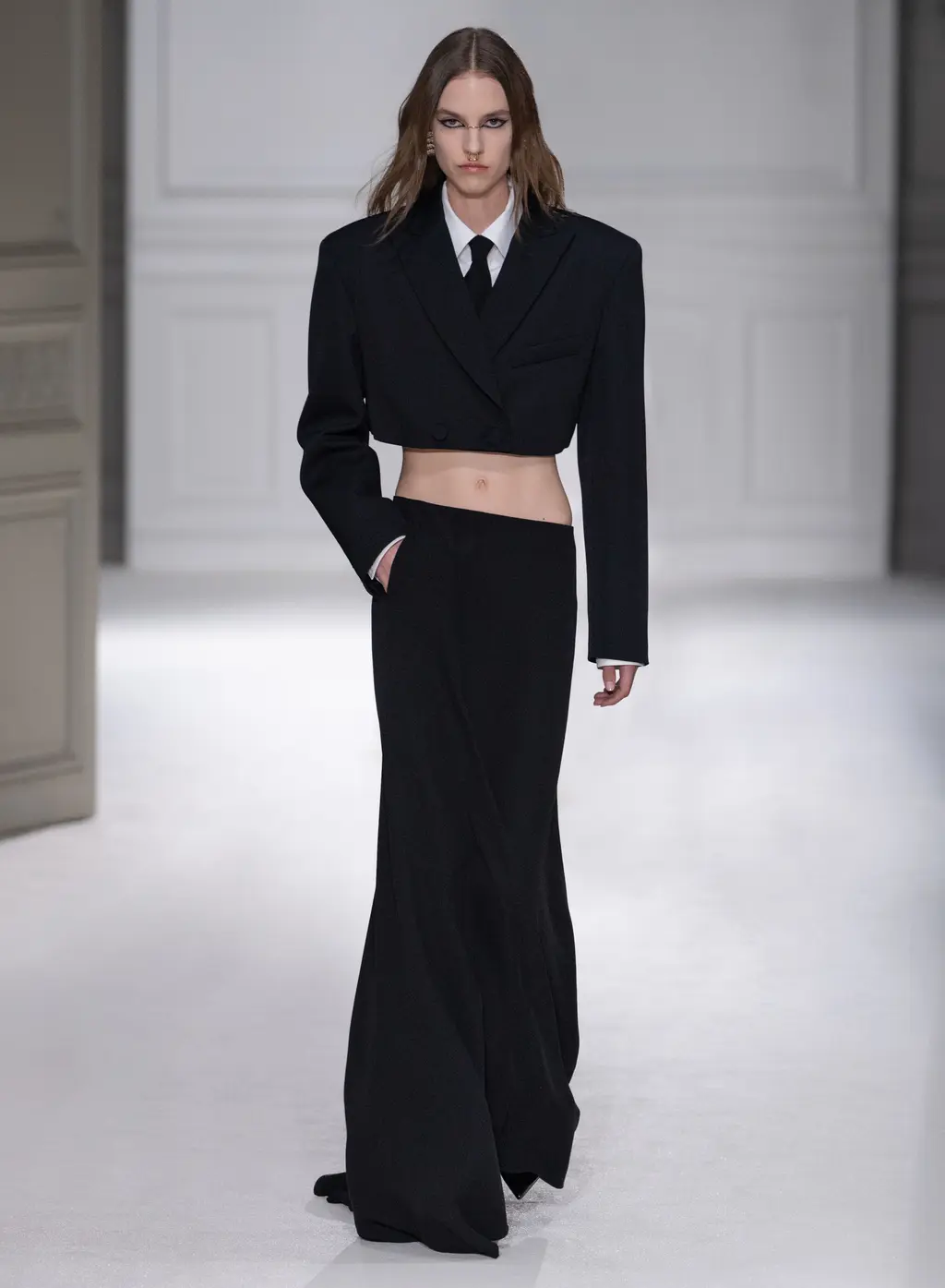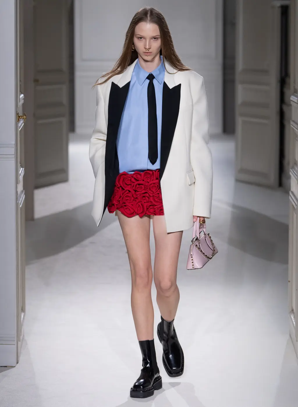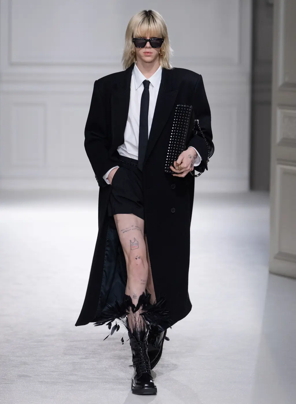 Exactly what it says on the tin: black tie, appropriated through a punky lens. The opening model had a Metallica tattoo and a lip piercing, setting the tone for Pierpaolo Piccioli’s remixed reading of formalwear. This wasn’t just an invitation to a fancy event (although if you are looking for something to wear to a posh shindig, there were more than a few looks to choose from). This was an invitation to re-imagine what black tie could be: for the daytime, the nighttime, the masculine and the feminine.