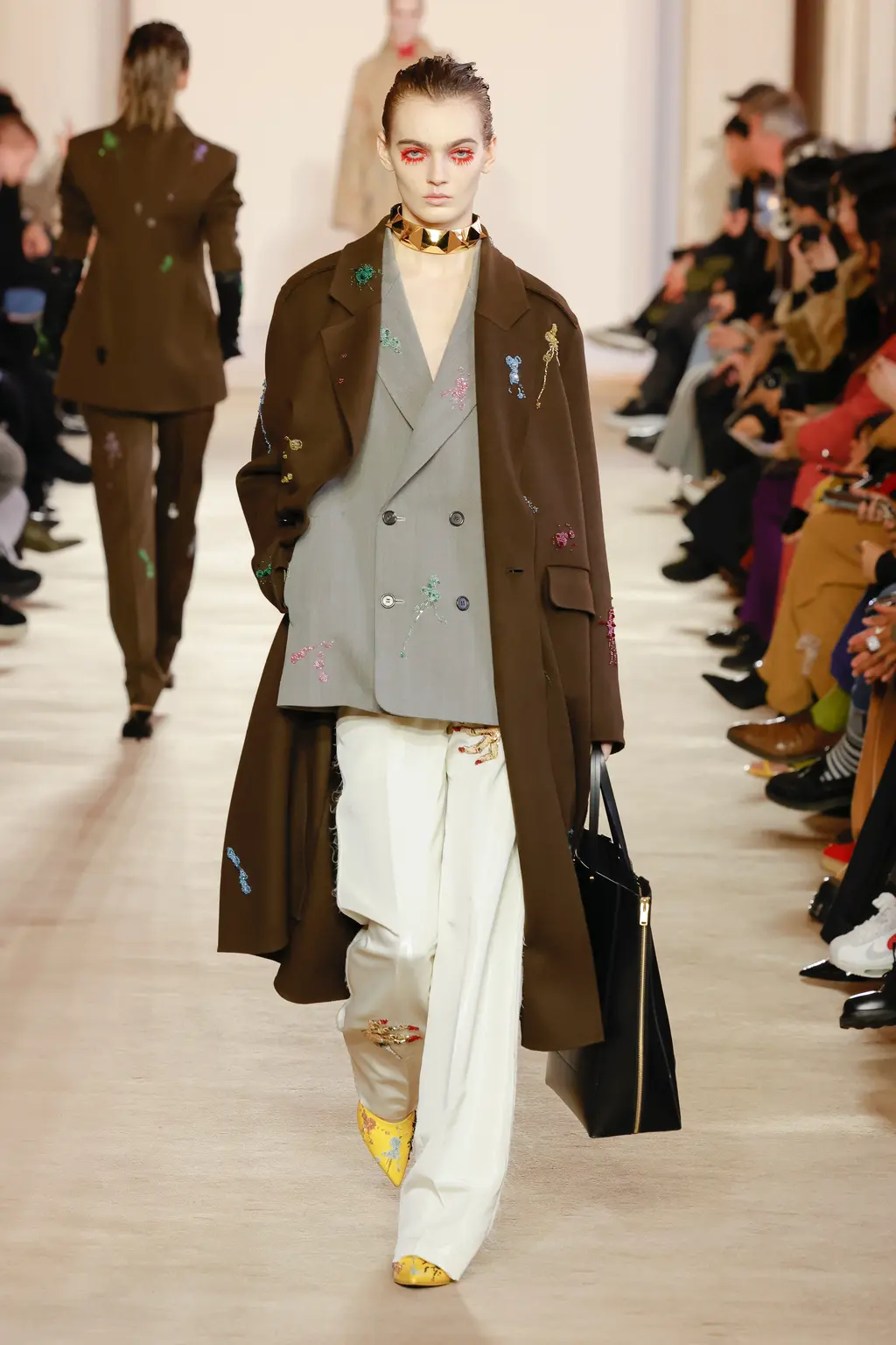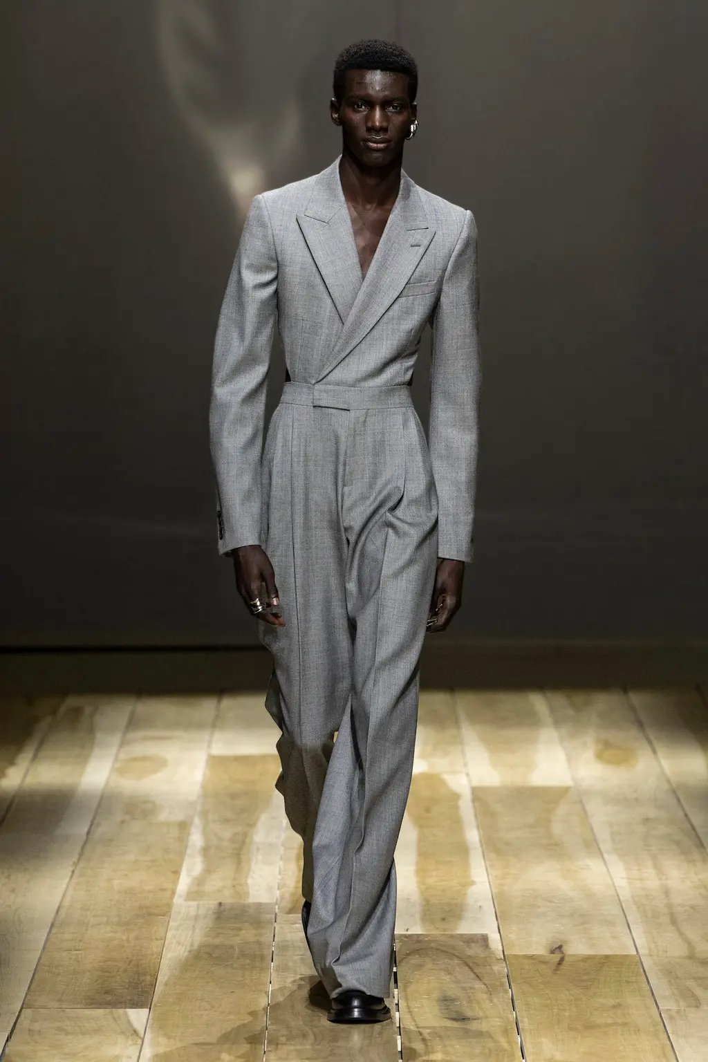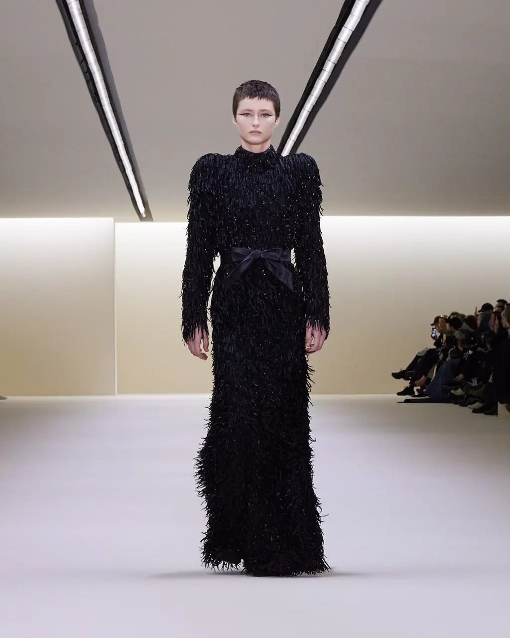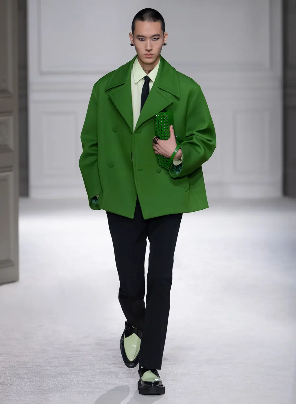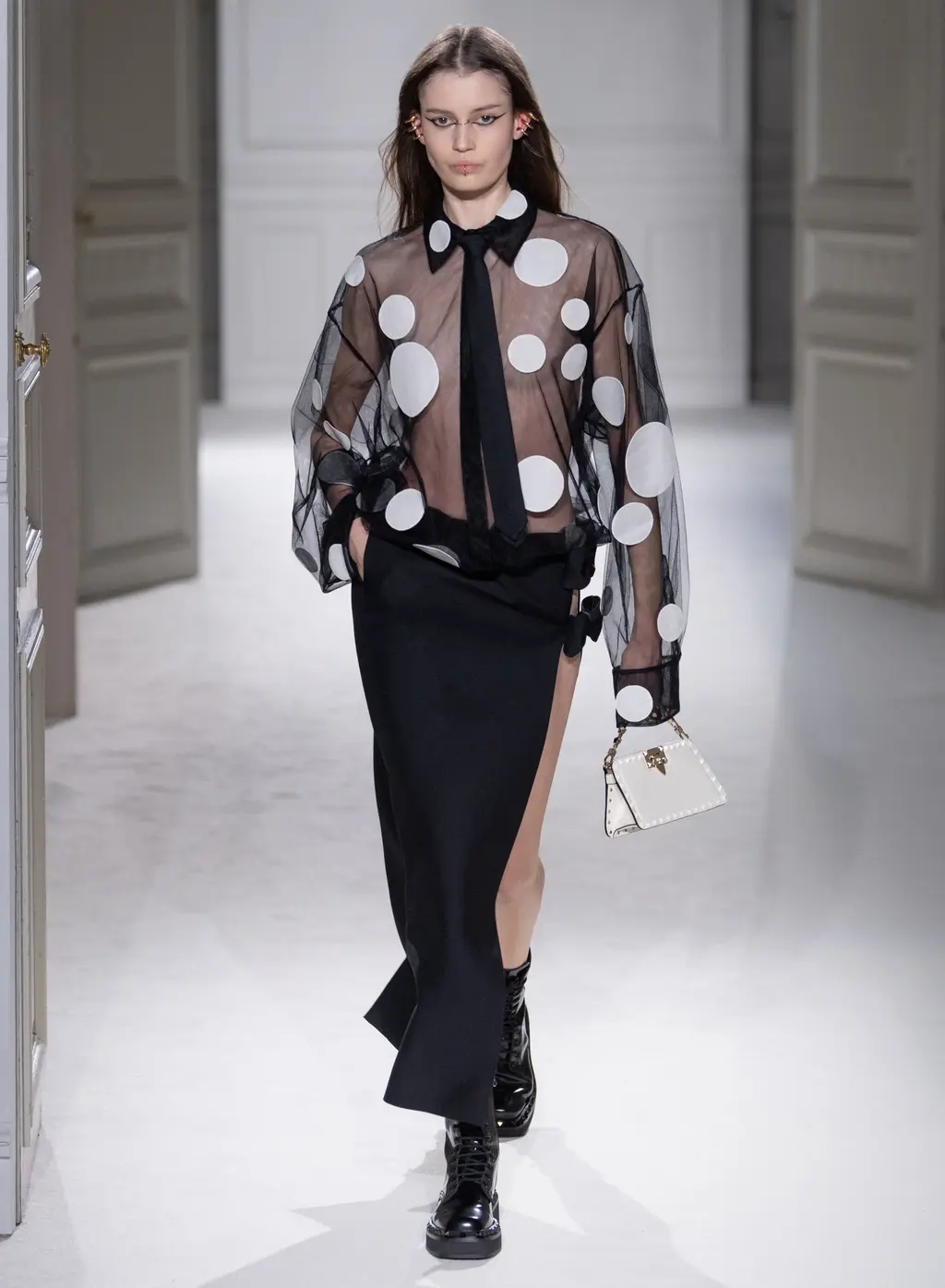 Exactly what it says on the tin: black tie, appropriated through a punky lens. The opening model had a Metallica tattoo and a lip piercing, setting the tone for Pierpaolo Piccioli’s remixed reading of formalwear. This wasn’t just an invitation to a fancy event (although if you are looking for something to wear to a posh shindig, there were more than a few looks to choose from). This was an invitation to re-imagine what black tie could be: for the daytime, the nighttime, the masculine and the feminine.