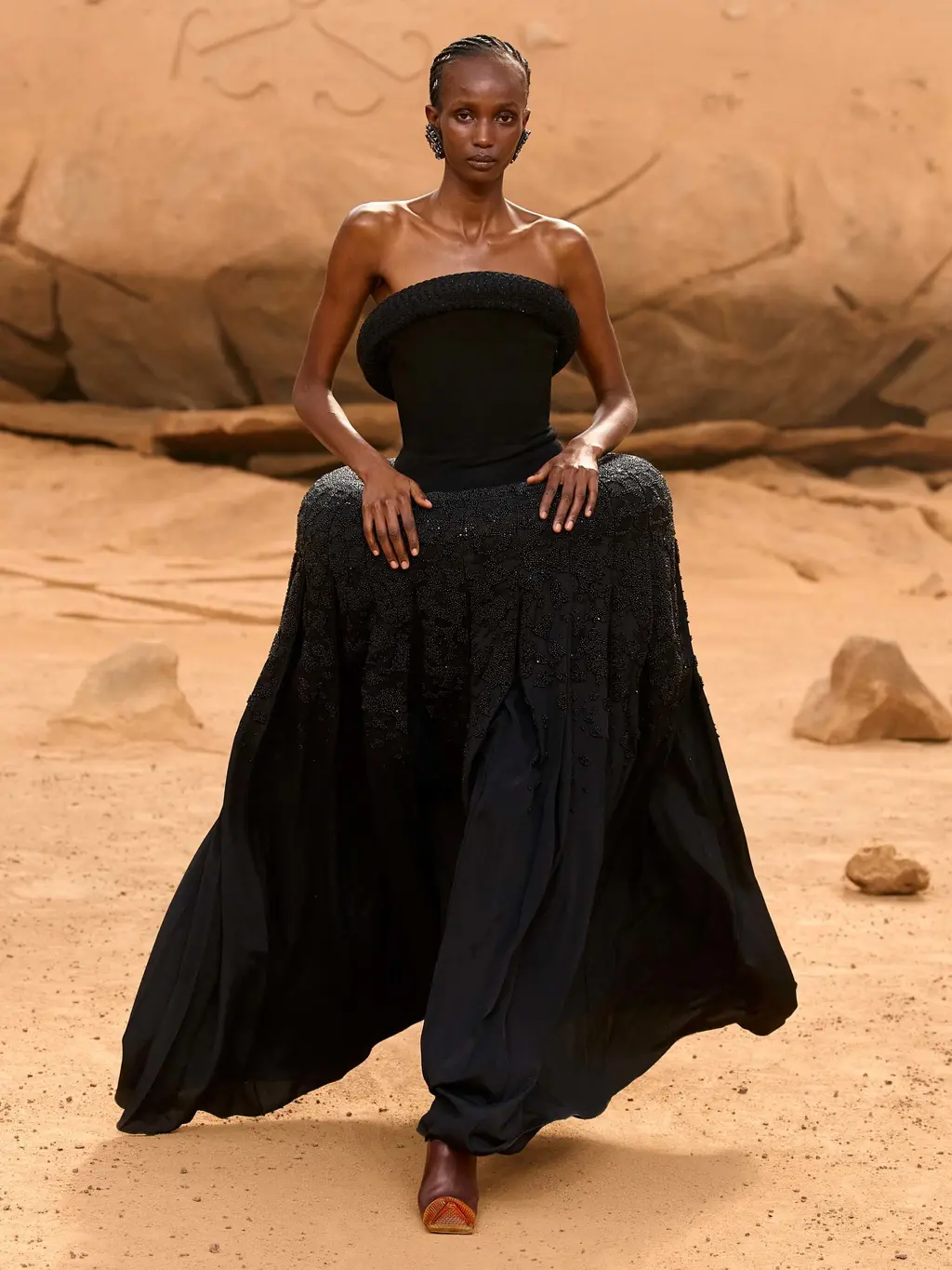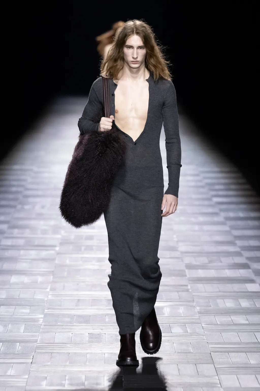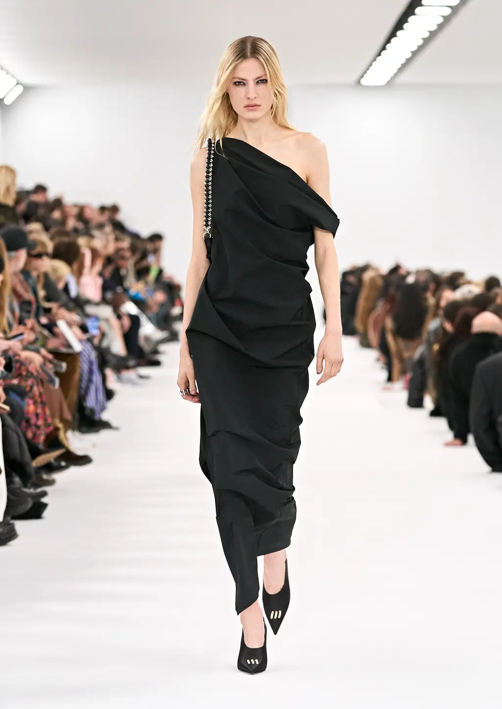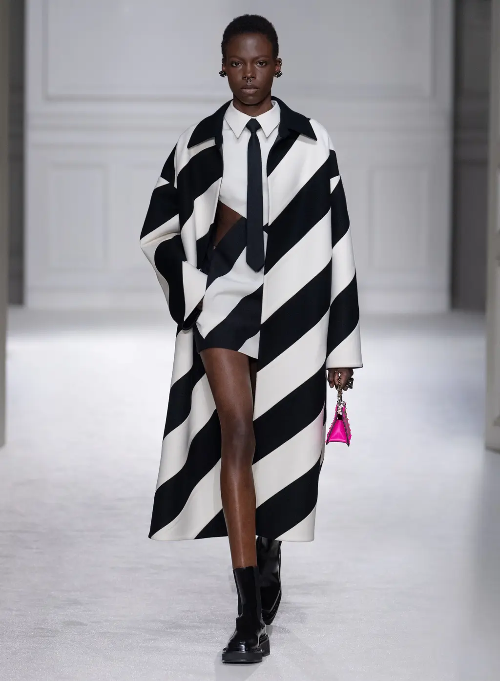 Exactly what it says on the tin: black tie, appropriated through a punky lens. The opening model had a Metallica tattoo and a lip piercing, setting the tone for Pierpaolo Piccioli’s remixed reading of formalwear. This wasn’t just an invitation to a fancy event (although if you are looking for something to wear to a posh shindig, there were more than a few looks to choose from). This was an invitation to re-imagine what black tie could be: for the daytime, the nighttime, the masculine and the feminine.