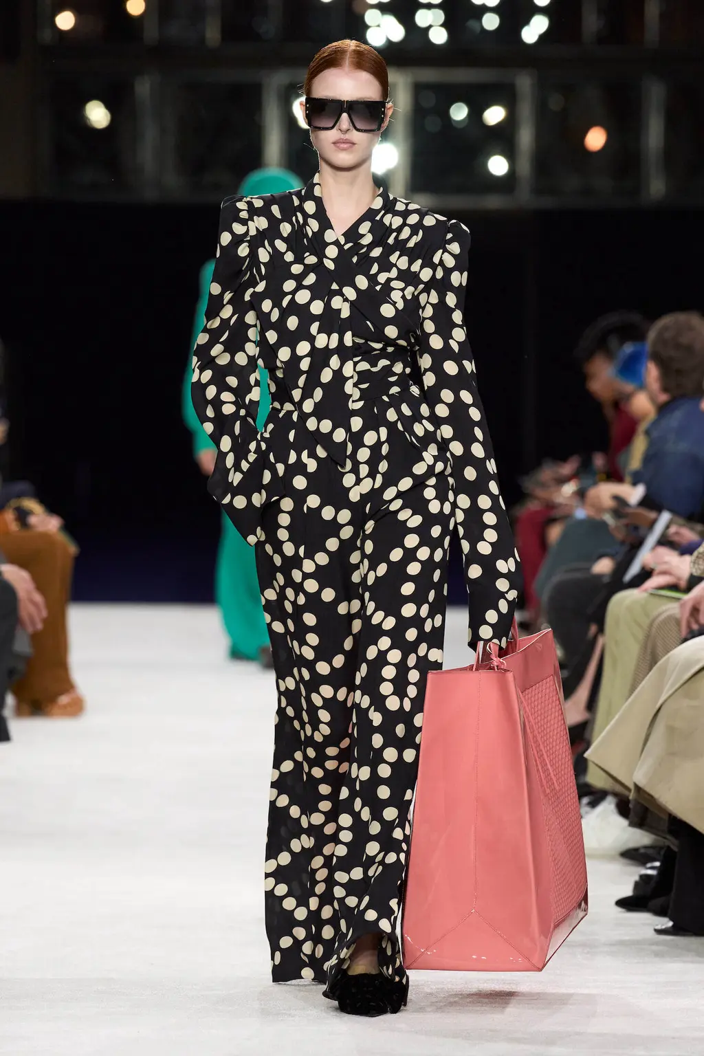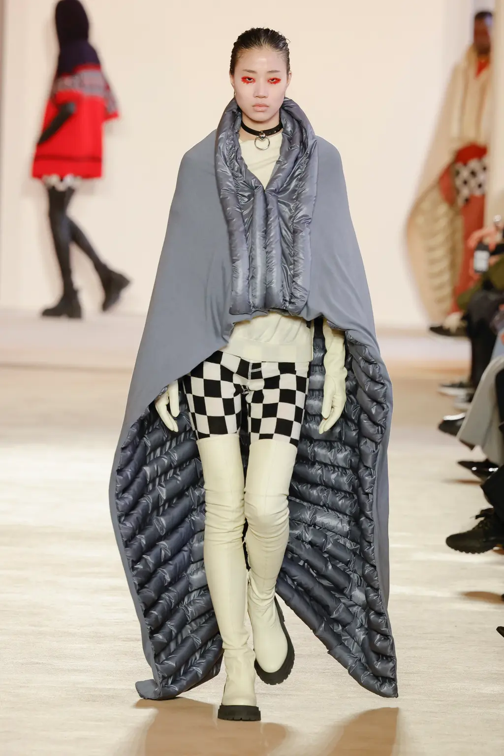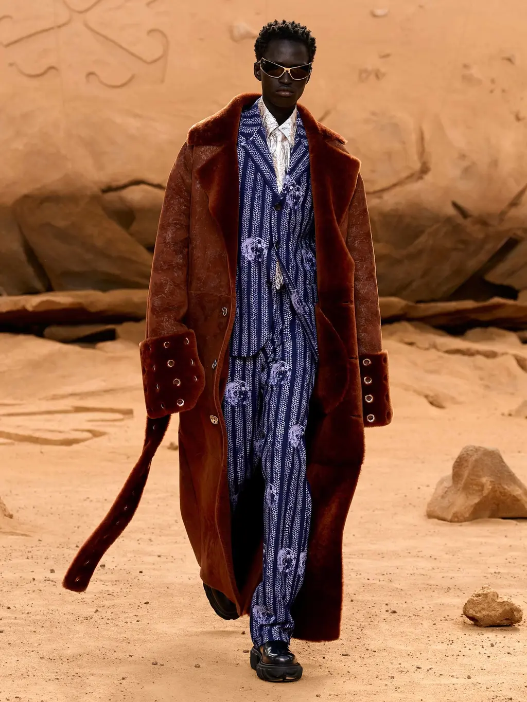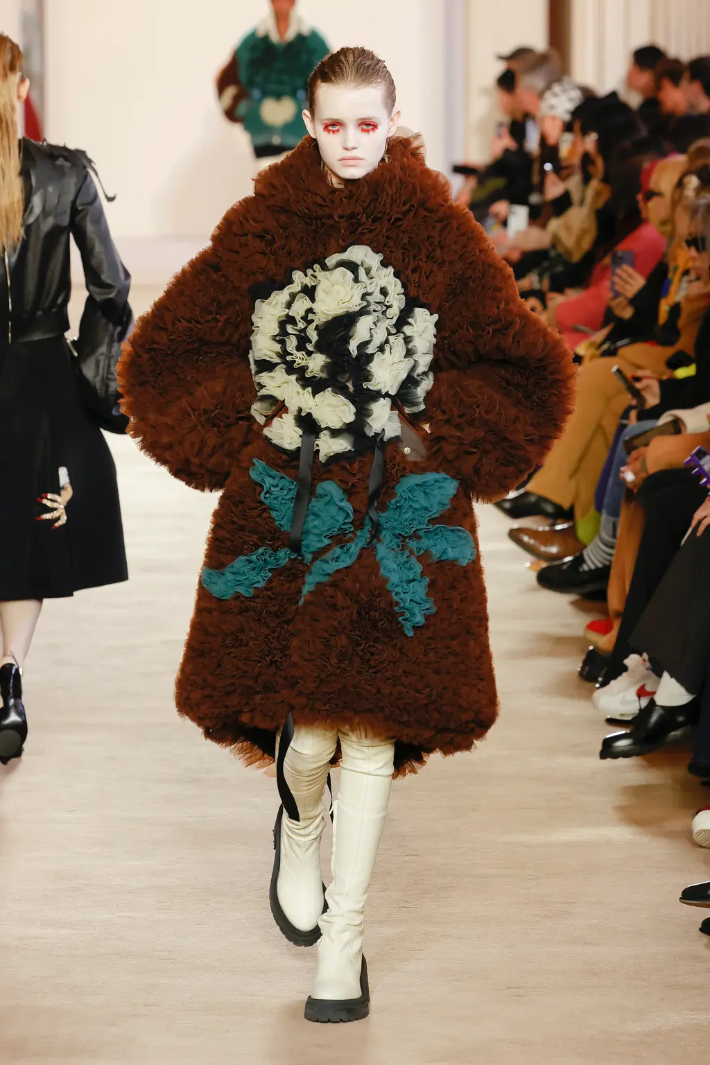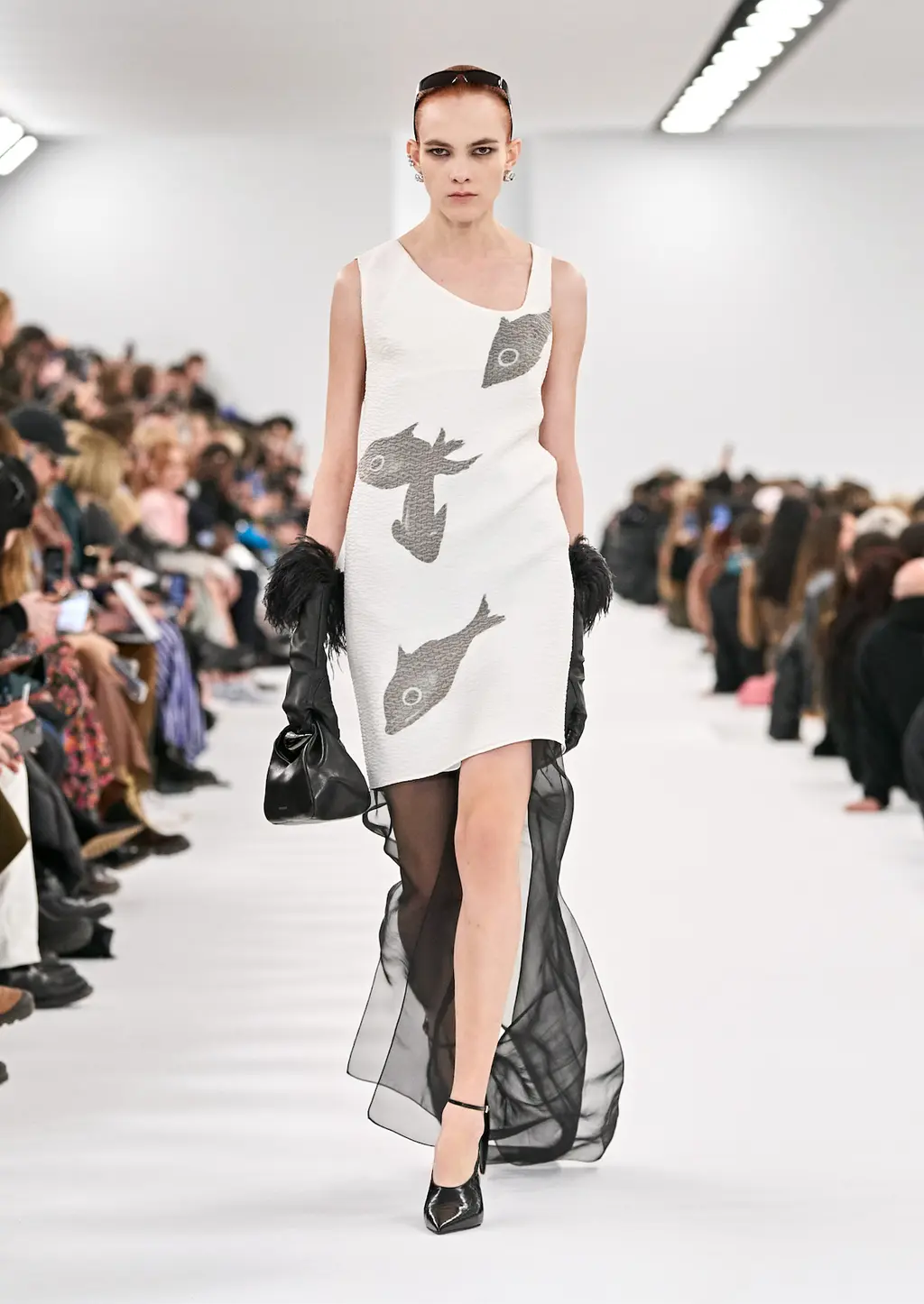 Opening with some really simple pieces of caping (apparently inspired by Little Red Riding Hood), followed by an actual hood (trimmed with faux fur to Rapunzel effect), the collection was indebted to fables, particularly those of 17th century poet Jean de la Fontaine, and even more particularly, his telling of The Wolf and the Lamb (in which the wolf, err, eats the lamb). This time the antagonists were humans and technology. But they just have easily been the brand and its more theatrical impulses. Which will win? Tonight, it was impulses: the Boston Dynamics robot-dogs, which often pulled the eye away from the fashion. But ultimately it will be the clothes, which feels as though they exist in and engage with the modern world perhaps better than anyone else is doing today