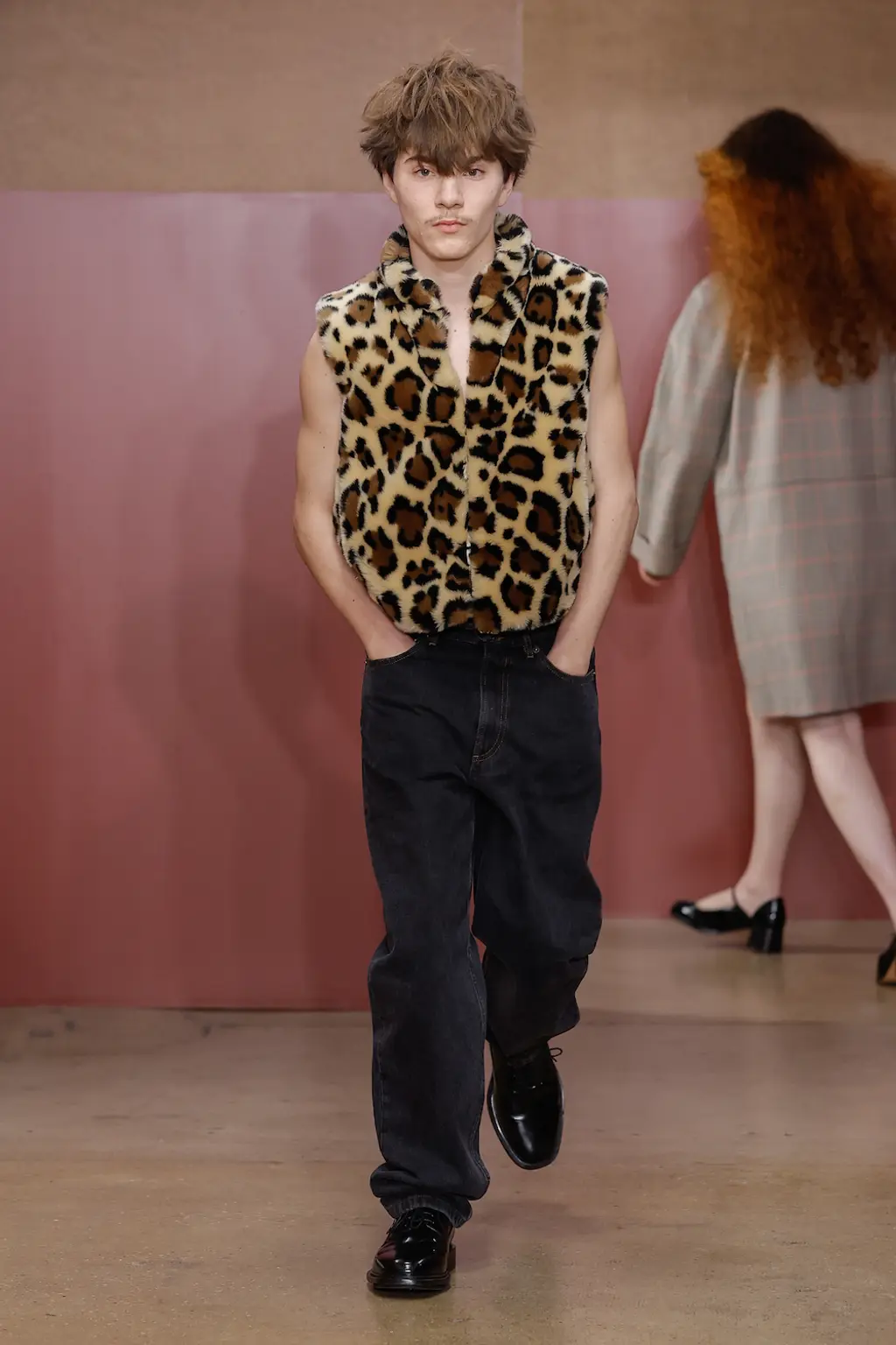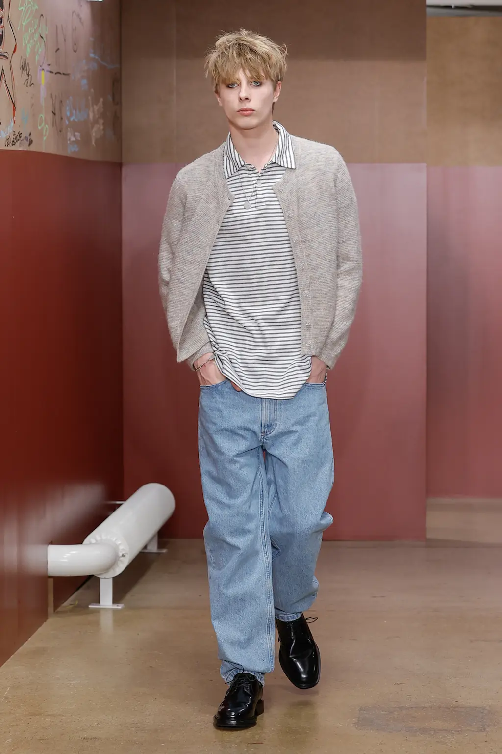 Introduced by founder Jean Touitou and cast entirely with kids from his daughter’s high school (they were responsible, too, for the on-wall doodling), the idea was to give young people a burst of freedom, having spent so long experiencing “the raging of the hormones in the parents’ bunker during the Covid crisis.” Rattling through various subculture looks (preppy, gothy, grunge‑y), the kids hit the runway, each delivering their best blue steel and looking genuinely wicked. At the end, they grabbed one another and started dancing as a group. What a great memory to have before they graduate! Perhaps we were tired, but we found the whole thing quite moving.