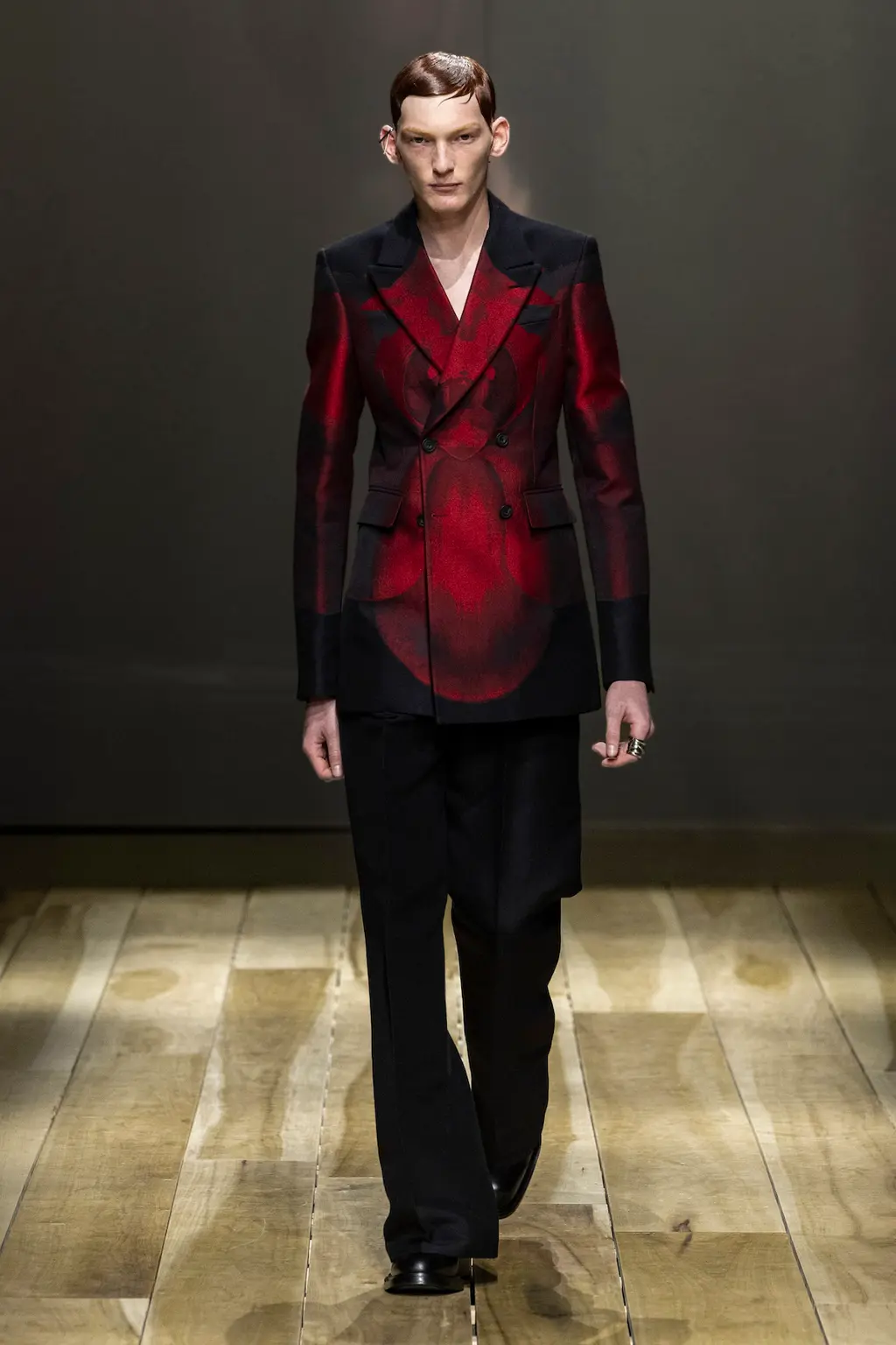 This was a knock-out collection from Sarah Burton, who looked to McQueen’s archive and plucked out some of the very best bits. The tailoring, which featured heavily throughout, was cut impeccably – razor-sharp blazers, mourning jackets on men and a return to houndstooth on a two-piece suit, perhaps most memorably used in 2009’s The Horn of Plenty collection, one of McQueen’s darkest shows. It felt like a suitable nod to Savile Row, where the late designer earned his chops in the late-’80s.
