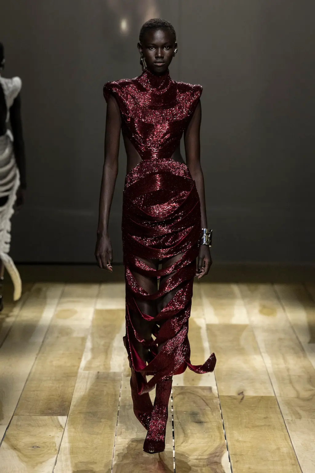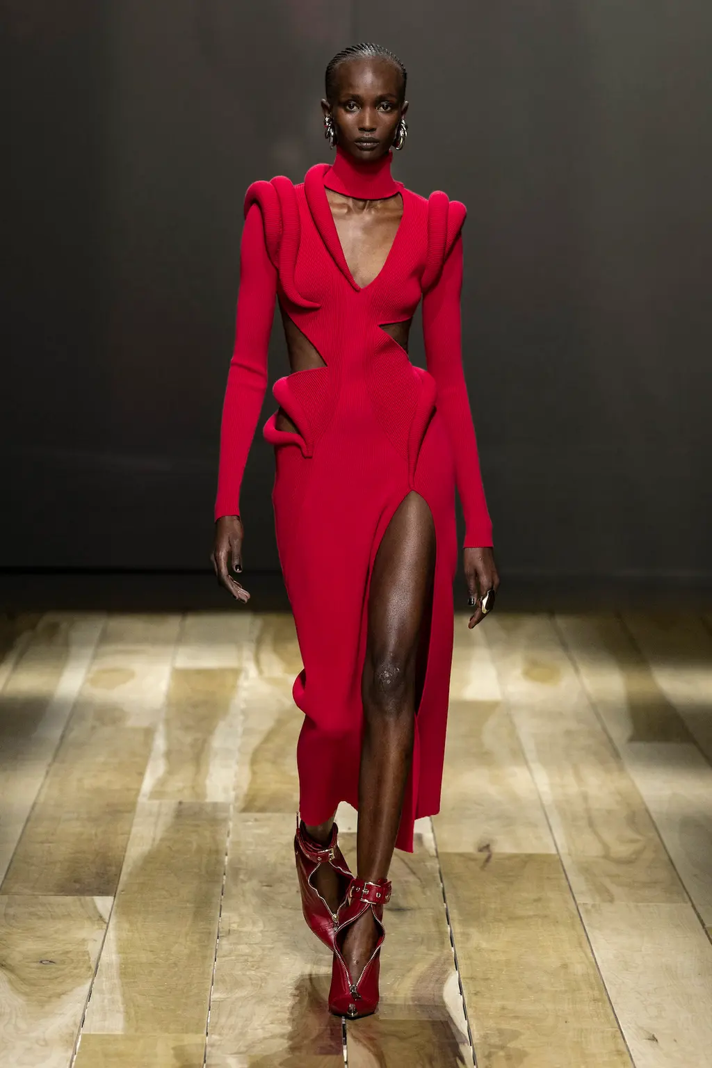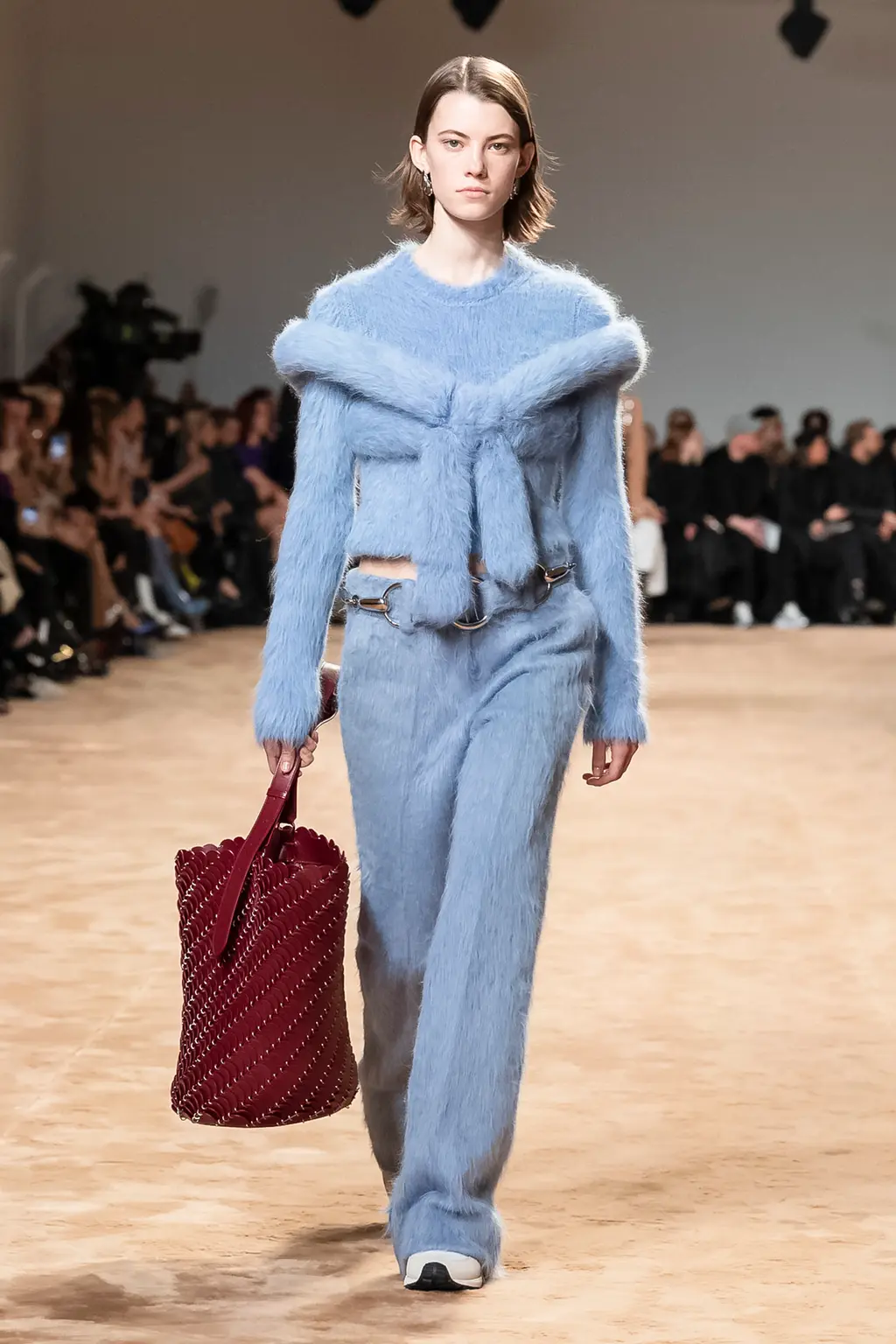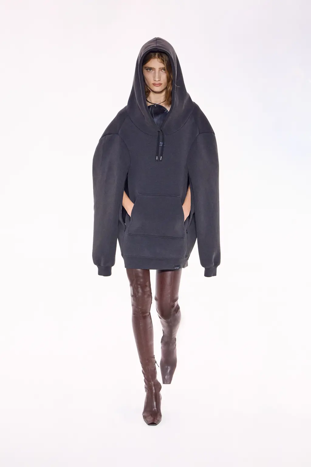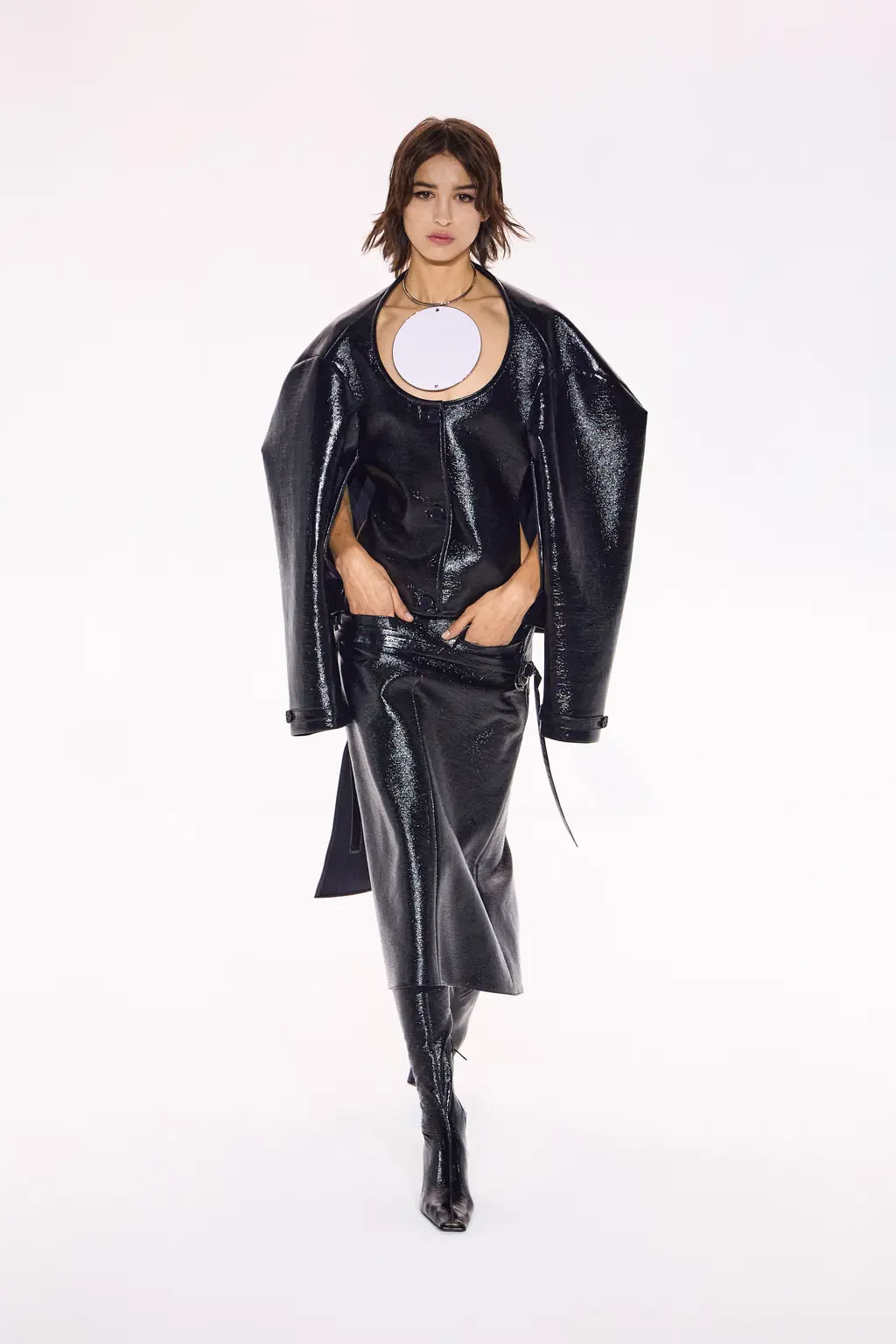 Firstly, just to say, what a remarkable position to be in. Designers Sébastien Meyer and Arnaud Vaillant have always pushed the innovation, sure, and not averse to big moments (think of that drive-in show from a couple of years back). But do we think they knew just how viral that Bella dress moment would go when they cooked it up last year? God, no. It was probably just one of many things they were working on. Two minutes and some liquid polymer material later and you’re headline news, one of the most watched clips of the year, selling clothes faster than you can make them. So how do you even begin to follow something like that? Well, by making desirable clothes and accessories.