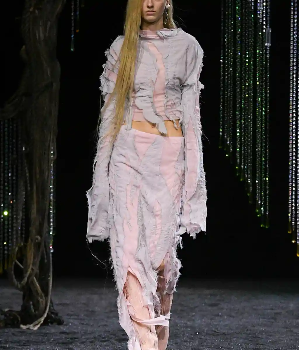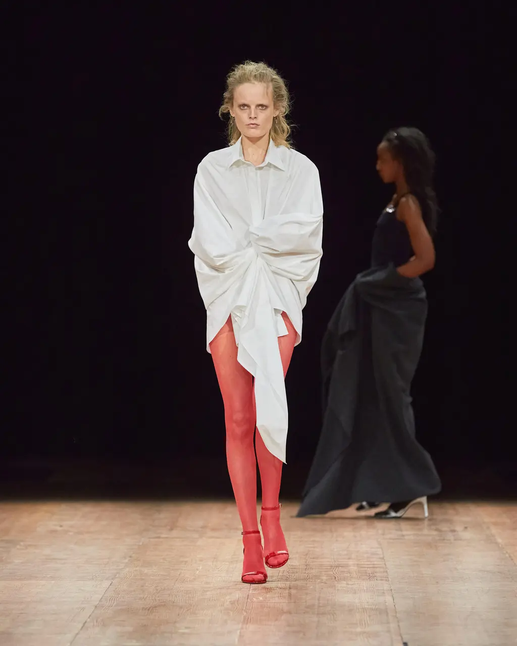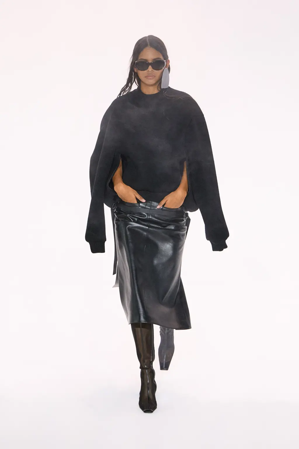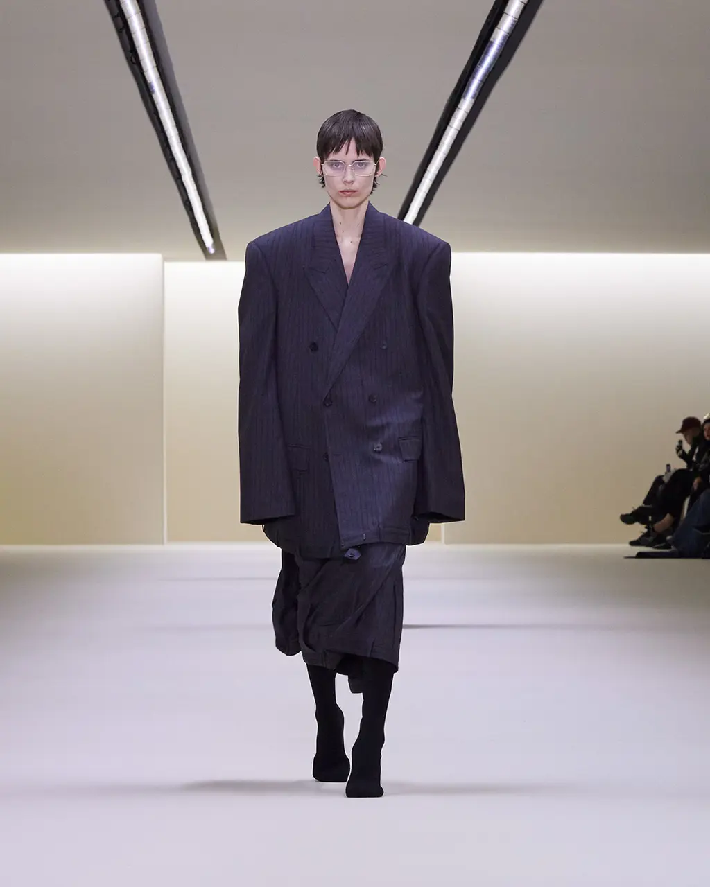 “I felt like I betrayed my true value of making clothes because people wouldn’t see the clothes anymore,” Demna said. “They would only see the set design and talk about that and that felt really frustrating for me. The idea was to really go away from that and really go [back] to square one for me, which is making clothes and putting that into focus.”