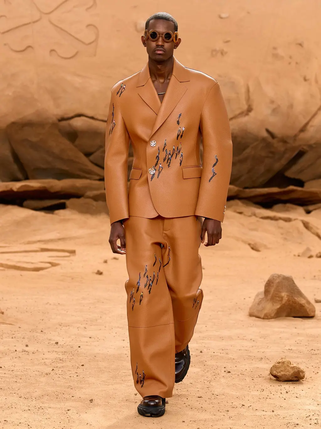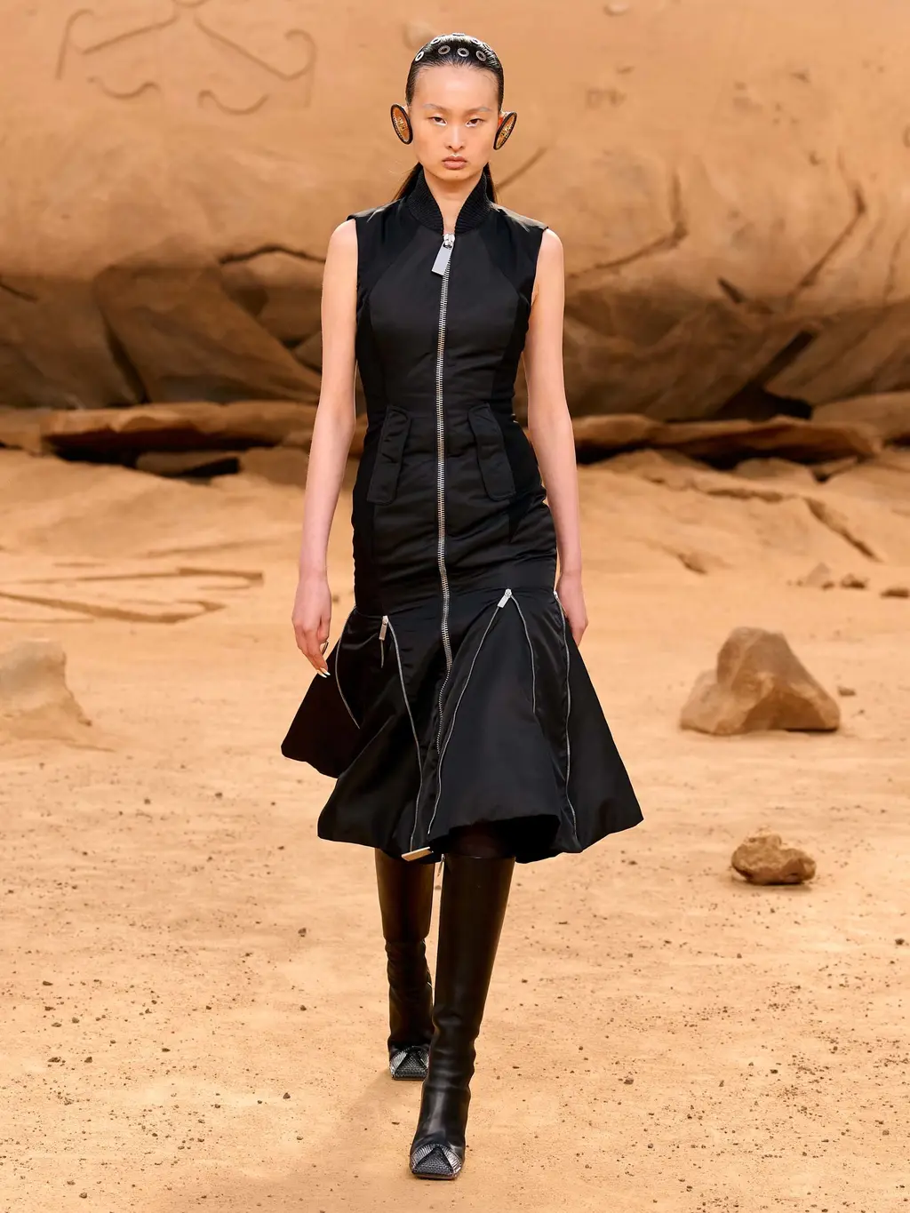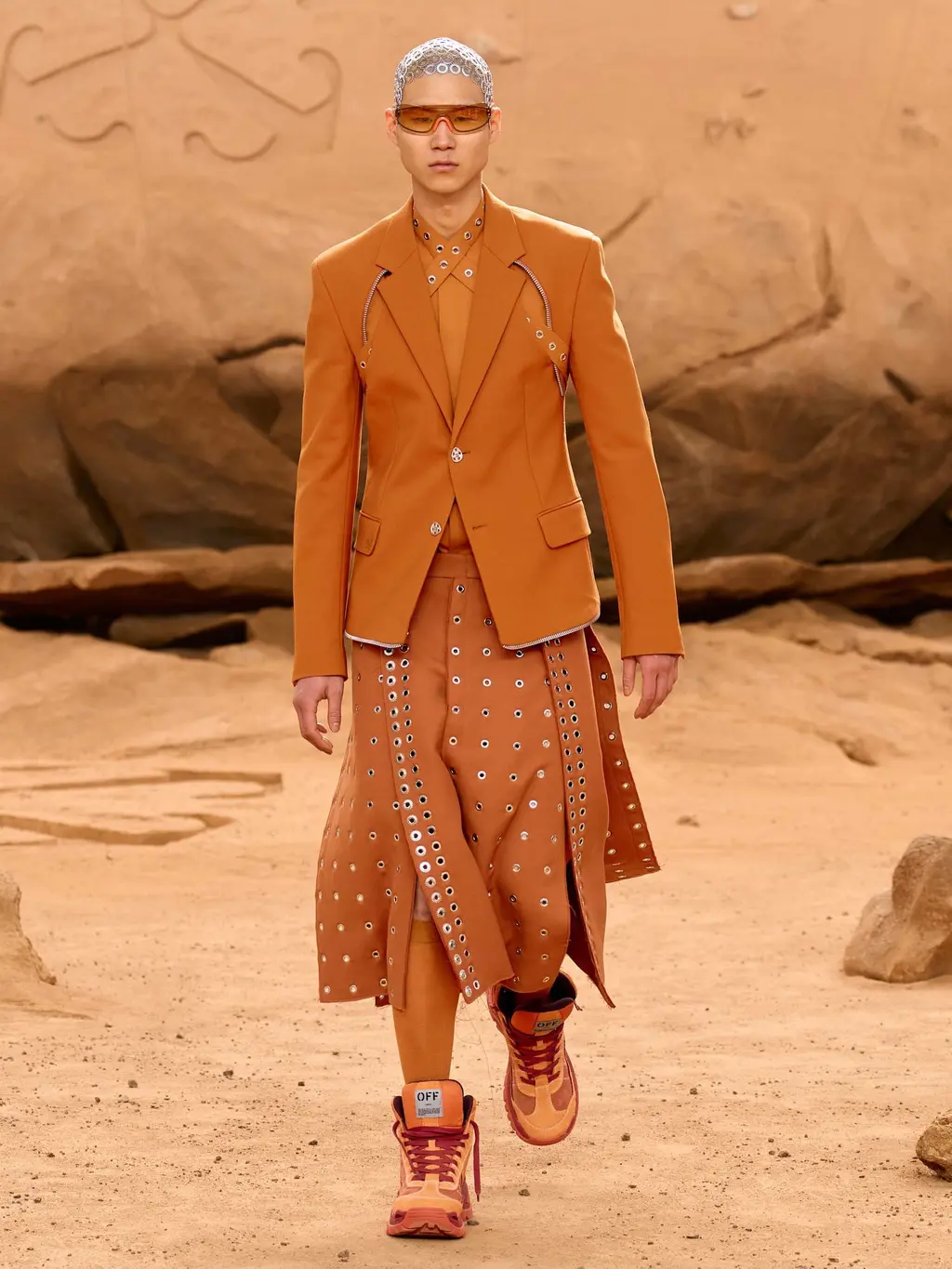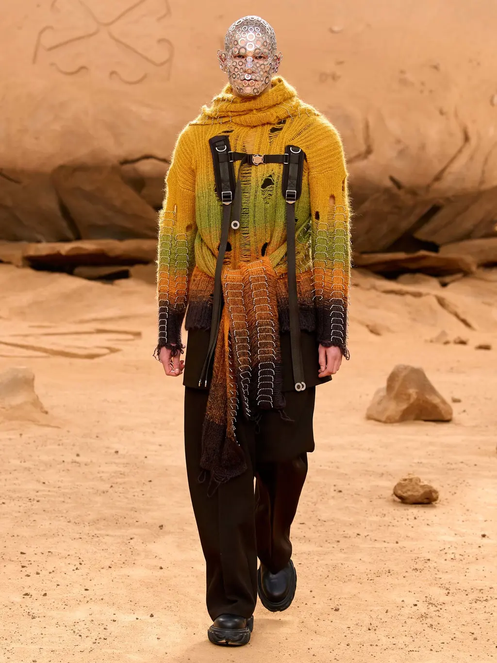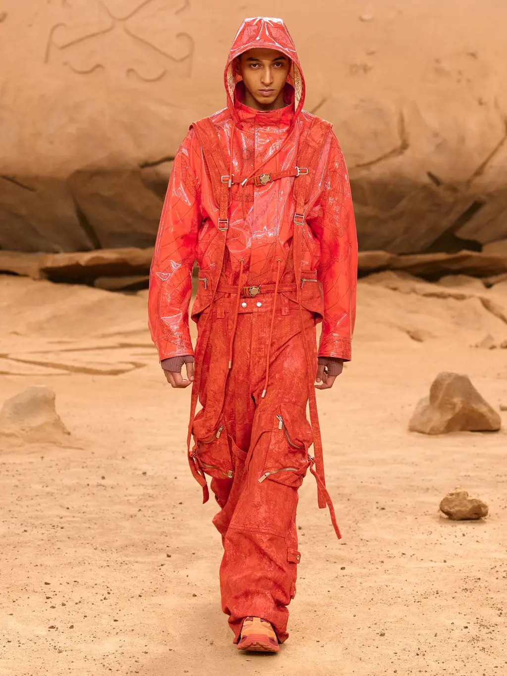 Well, the sci-fi feel continued there. Not in a naff, costume‑y way (you’ll be relieved to hear there were no Spock ears). But a way that tried to envision a new future now. Something that feels intrinsic to the path that Off-White charted under its late founder Virgil Abloh. These were clothes for a brave new world, led by stylist and Dazed editor Ib Kamara, who became Art & Image Director just under a year ago. And you felt his influence most keenly on some of the West African-inspired looks (Kamara was born in Sierra Leone), which felt like a fantastically fresh take on the sci-fi genre.
