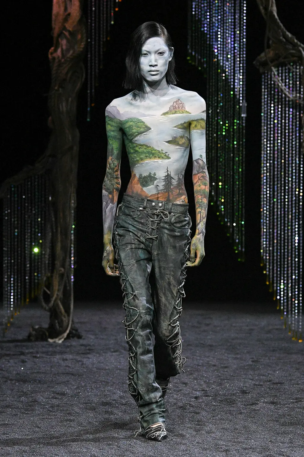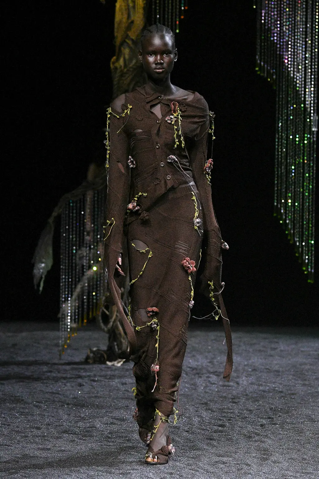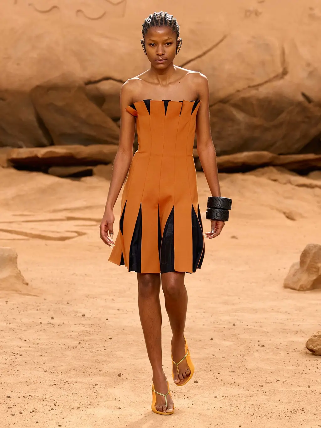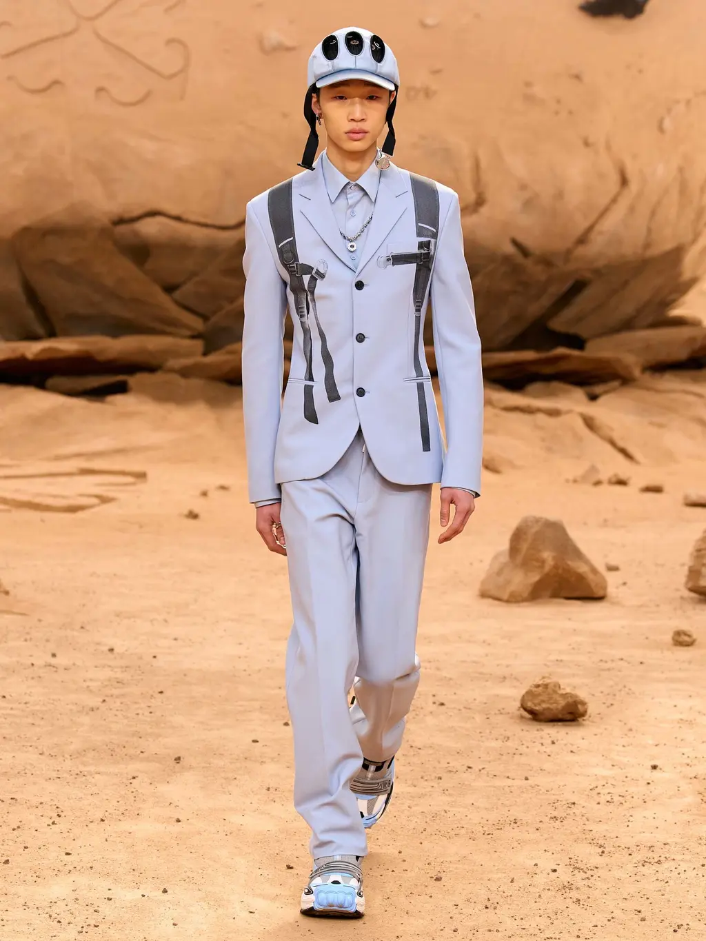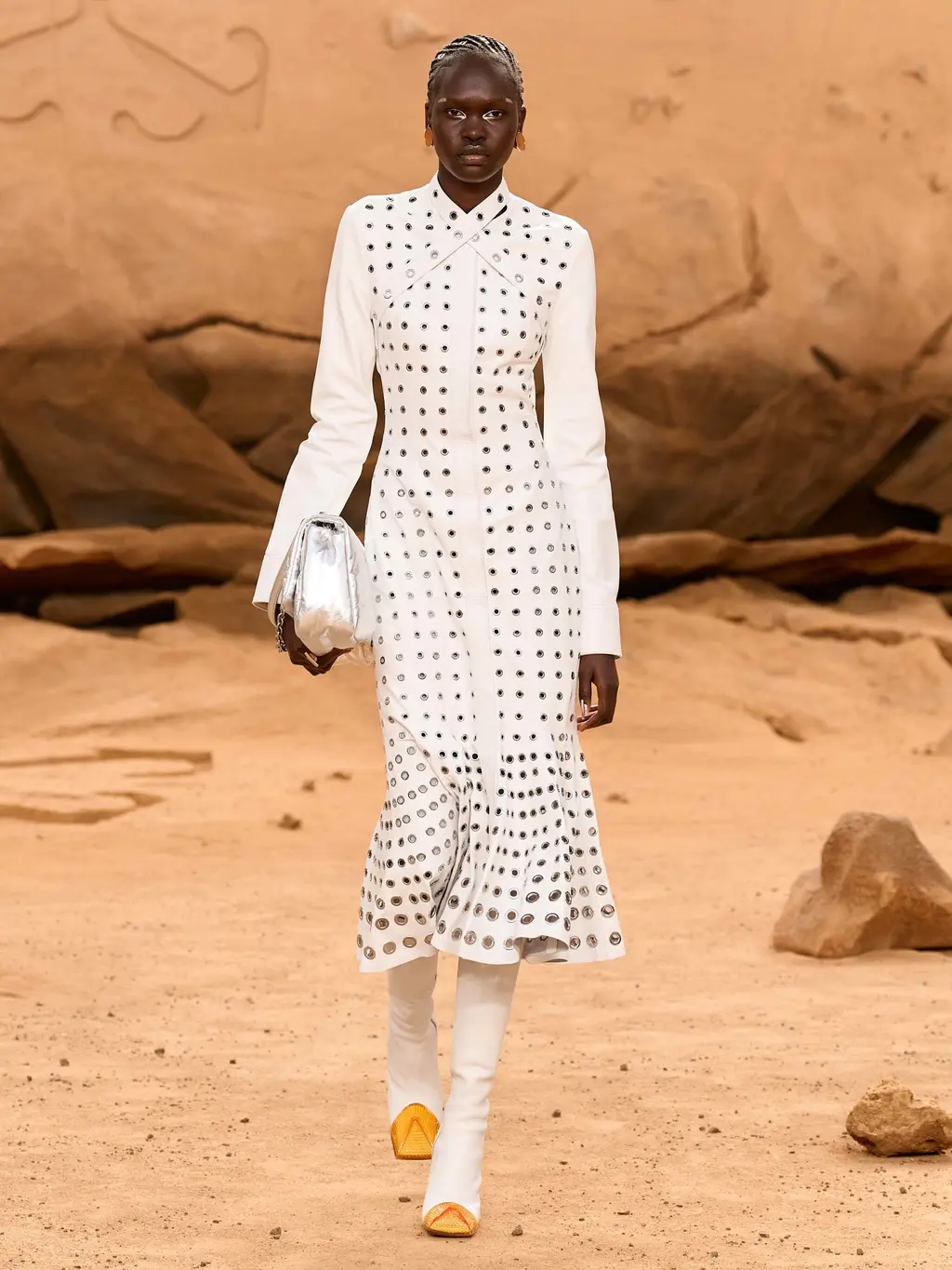 Well, the sci-fi feel continued there. Not in a naff, costume‑y way (you’ll be relieved to hear there were no Spock ears). But a way that tried to envision a new future now. Something that feels intrinsic to the path that Off-White charted under its late founder Virgil Abloh. These were clothes for a brave new world, led by stylist and Dazed editor Ib Kamara, who became Art & Image Director just under a year ago. And you felt his influence most keenly on some of the West African-inspired looks (Kamara was born in Sierra Leone), which felt like a fantastically fresh take on the sci-fi genre.