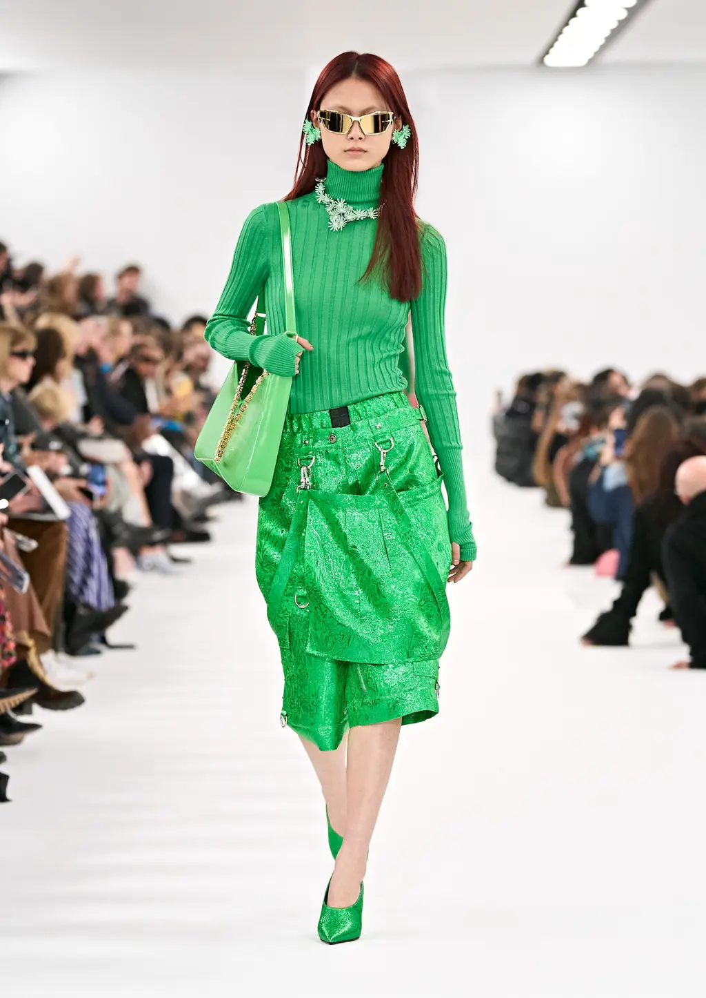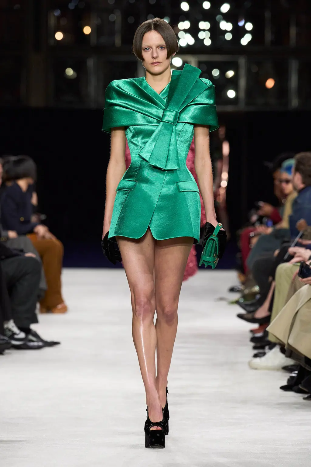 Can we say his best collection yet? Okay, we’ve said it. It’s on record. This was Williams’ best collection yet. Elegance, glamour, sophistication and confidence made with fittingly military precision. The clothes felt classic in their construction and shape but never pastiche, despite the very explicit nods to the house’s founder Hubert de Givenchy in the use of florals and a new fish motif, both adapted from the designer’s archives. We loved the flashes of green throughout and the way the collection opened up in the second half, showcasing Williams’ own grasp of cool, as well as Givenchy chic.