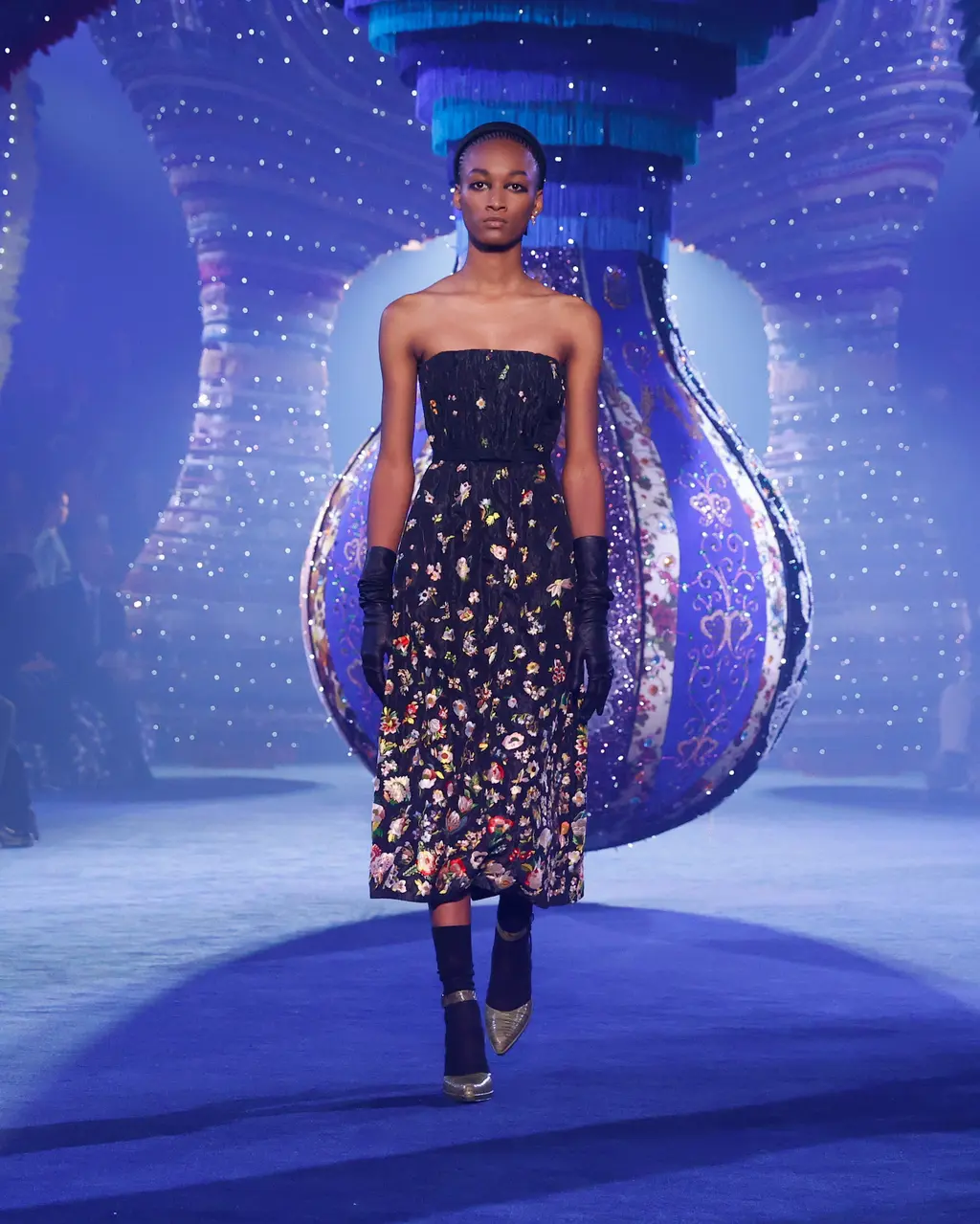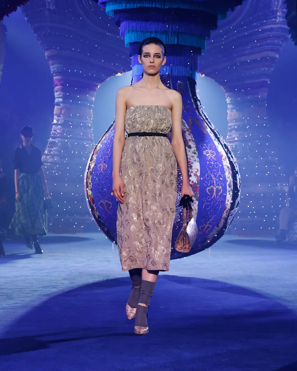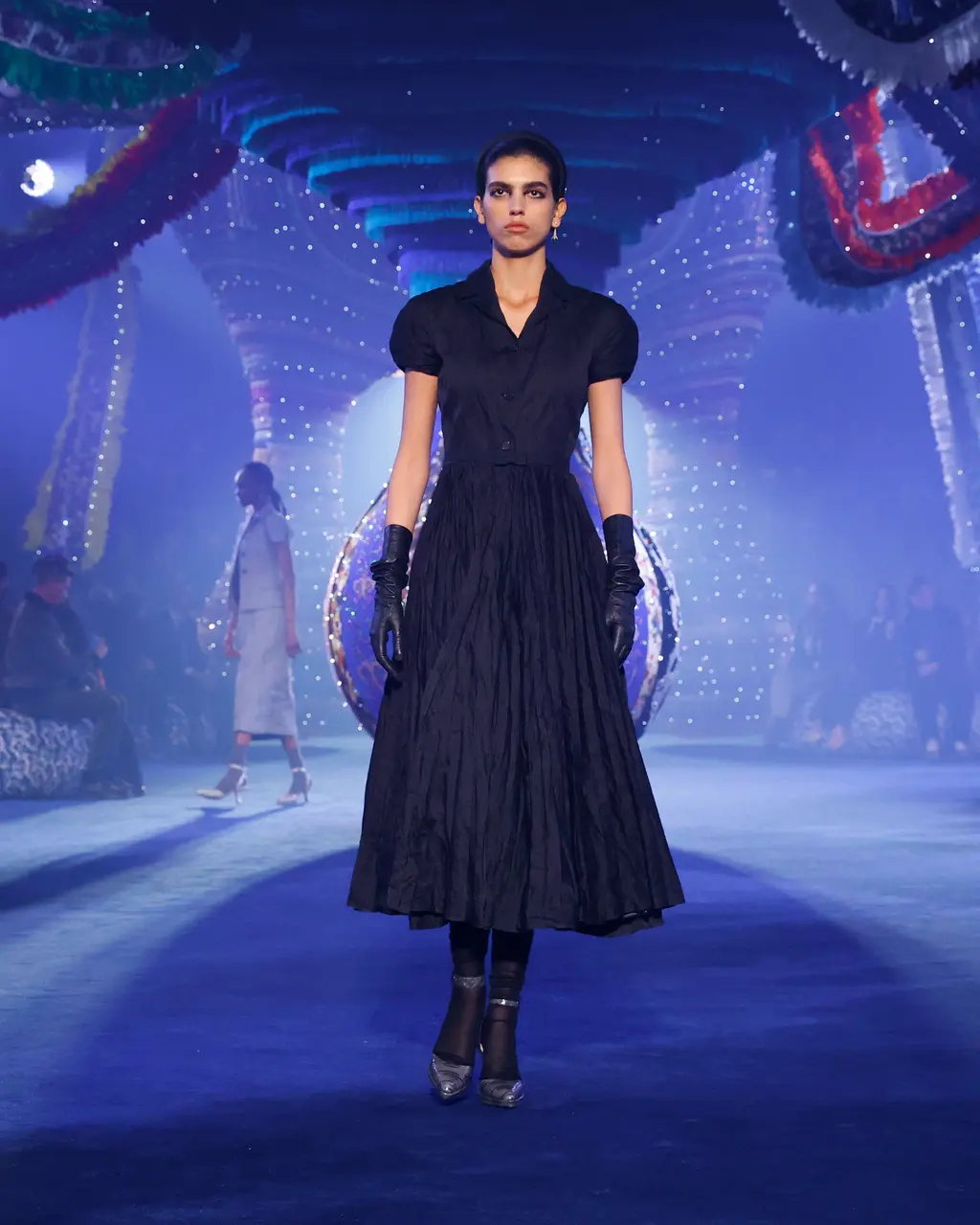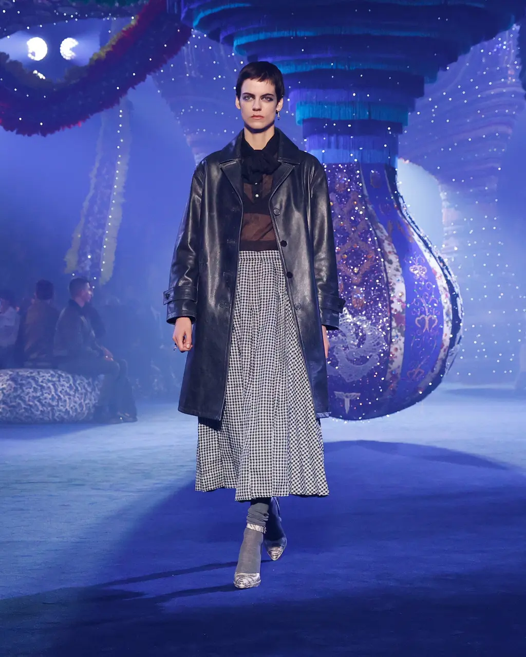 It felt pleasingly ’50s. But modern, too, presented under a set of what looked like kaleidoscopic rock formations by Portuguese artist Joana Vasconcelos. According to the show notes, Creative Director Maria Grazia Chiuri, who has often paid tribute to women in her work, wanted to “delve deeper into French style around three extraordinary personalities: Édith Piaf, Juliette Gréco, and Catherine Dior” (Christian’s sister, who was part of the French Resistance). And that she did, creating a collection that felt classically Dior (the florals; the shapes) but also bracingly modern (the lightness; the metallic thread which gave the fabrics a sort of crumpled look). Just like the women who inspired it.